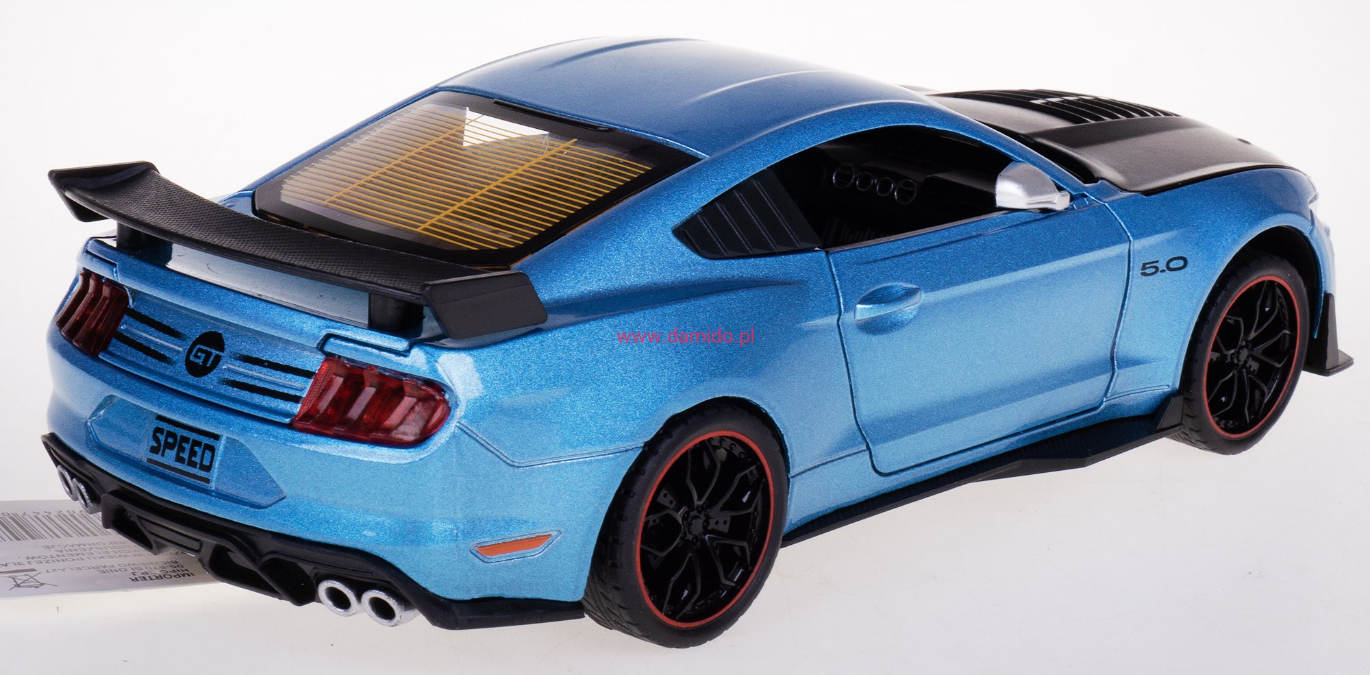 Model sportowy GT500 SPEED wykonany został w skali 1:24 z metalu i plastiku z napędem pull-back w żywej kolorystyce dla każdego małego fana motoryzacji.