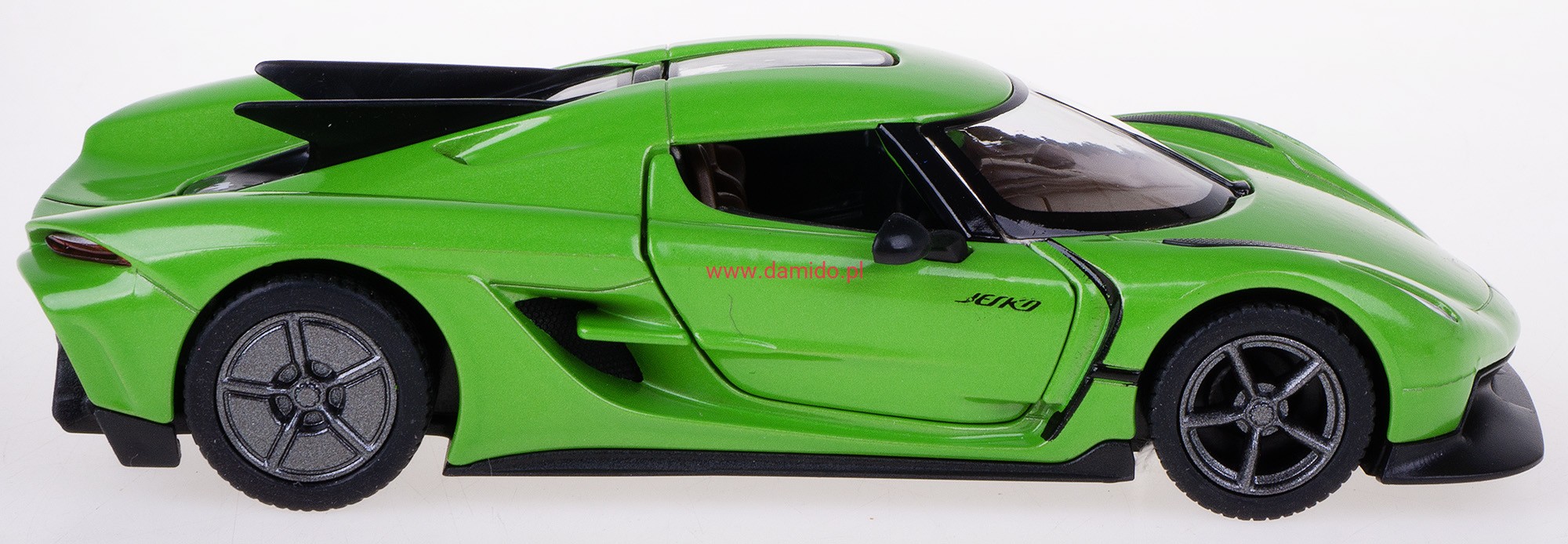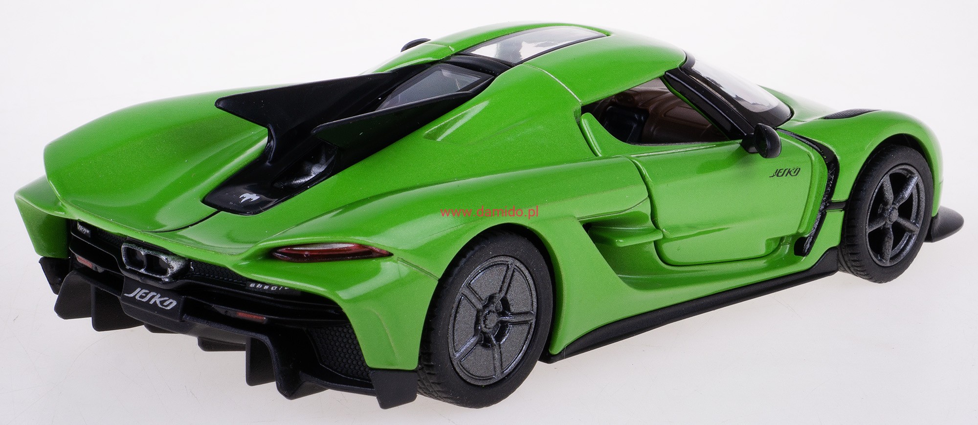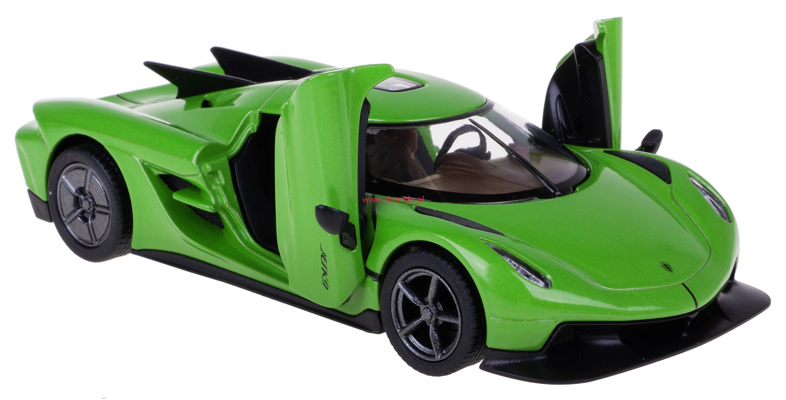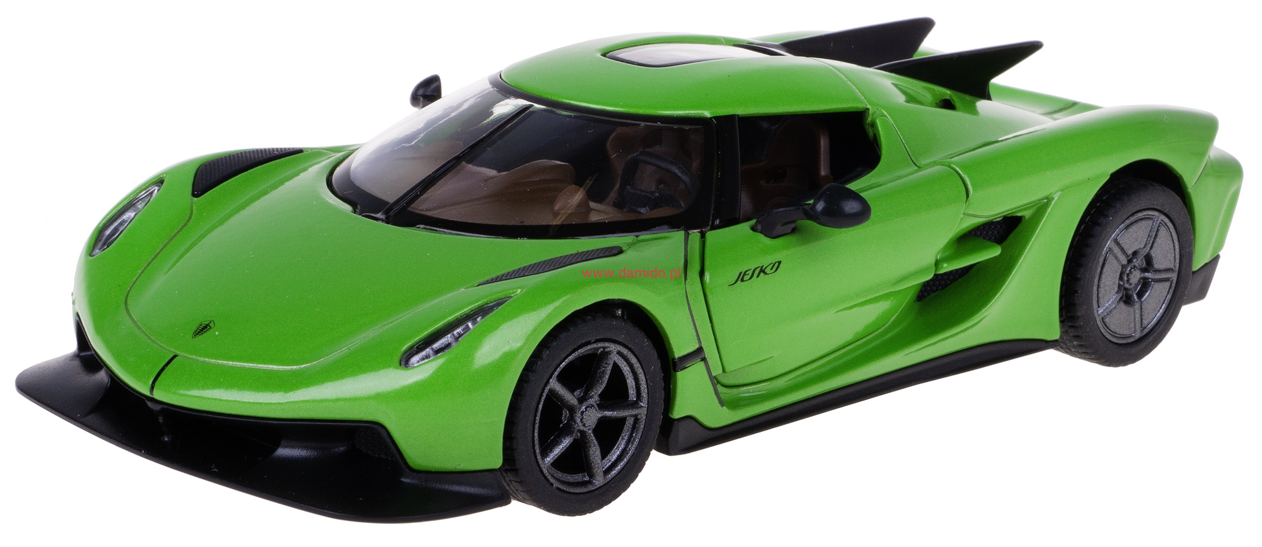 Model metalowy KOENIGSEGG JESKO ABSOLUT w skali 1:36 z napędem typu ''Pull Back". Model wykonany z metalu i plastiku. Posiada otwierane boczne drzwi ''do góry'', przez które można zajrzeć do wnętrza modelu oraz posiada gumowe opony.