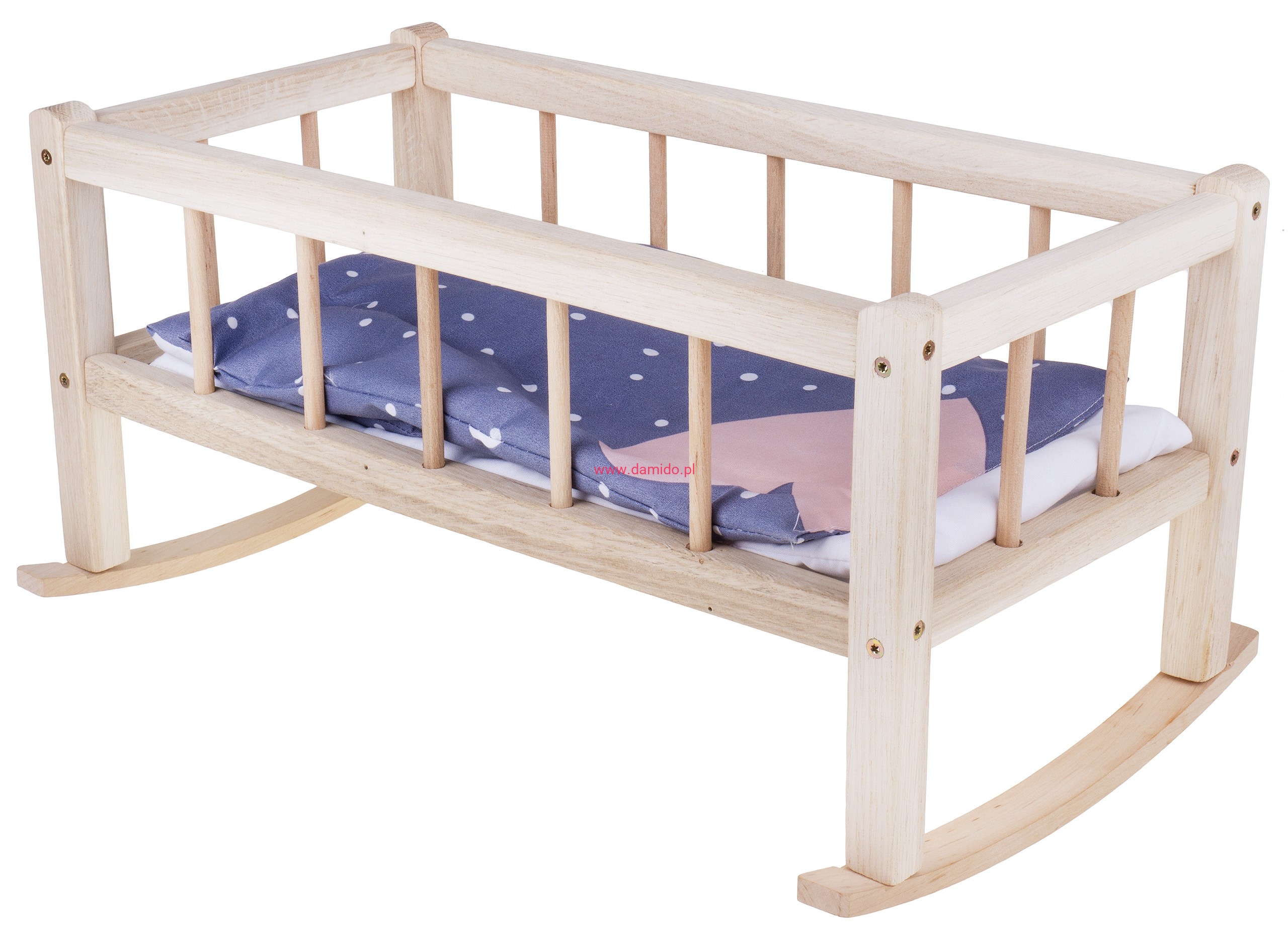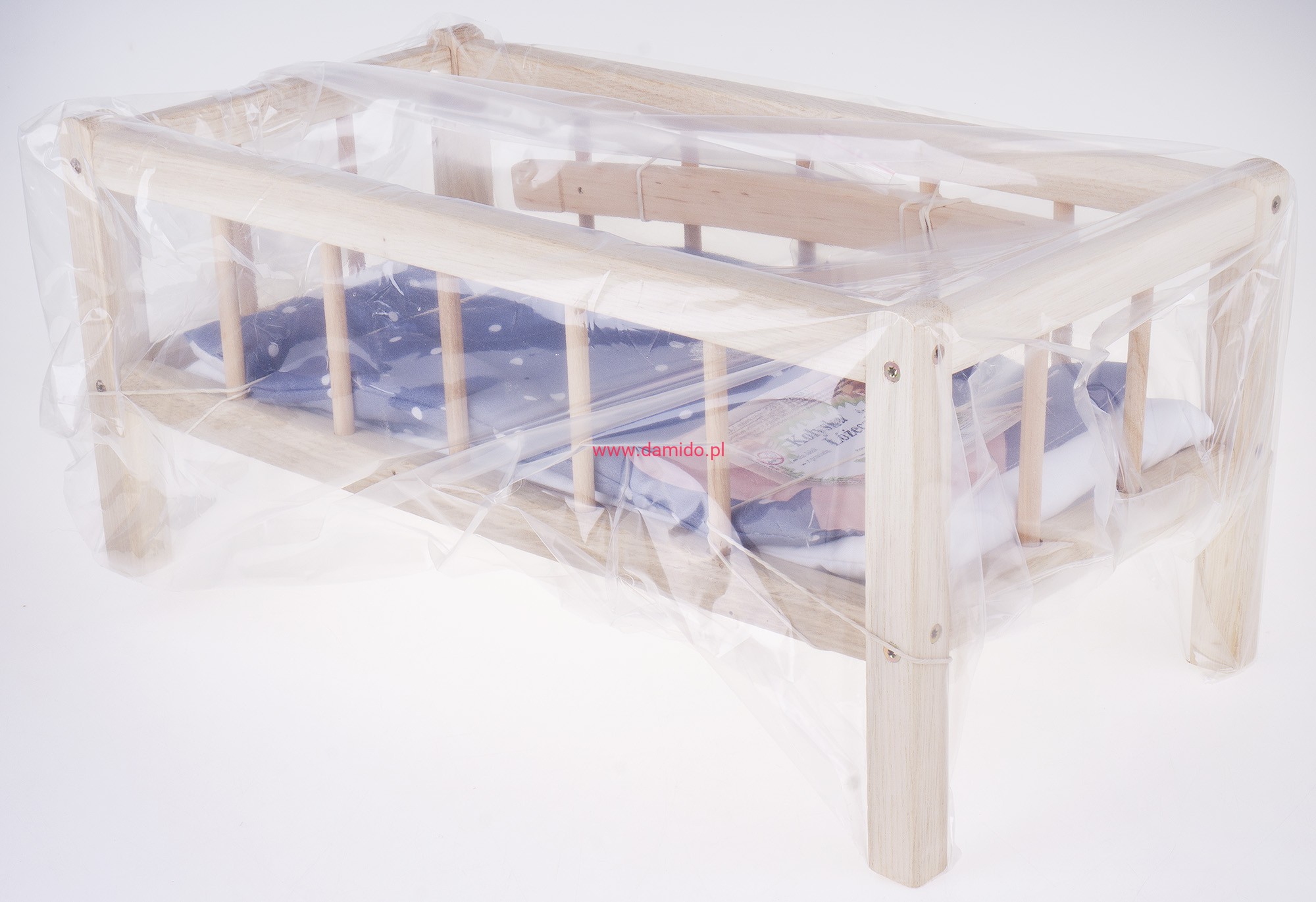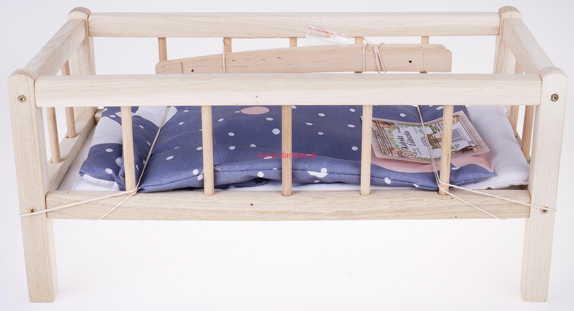 ŁÓŻECZKO KOŁYSKA DREWNIANE DLA LALEK 43,5 CM + KOŁDERKA Z PODUSIĄ L2 4029