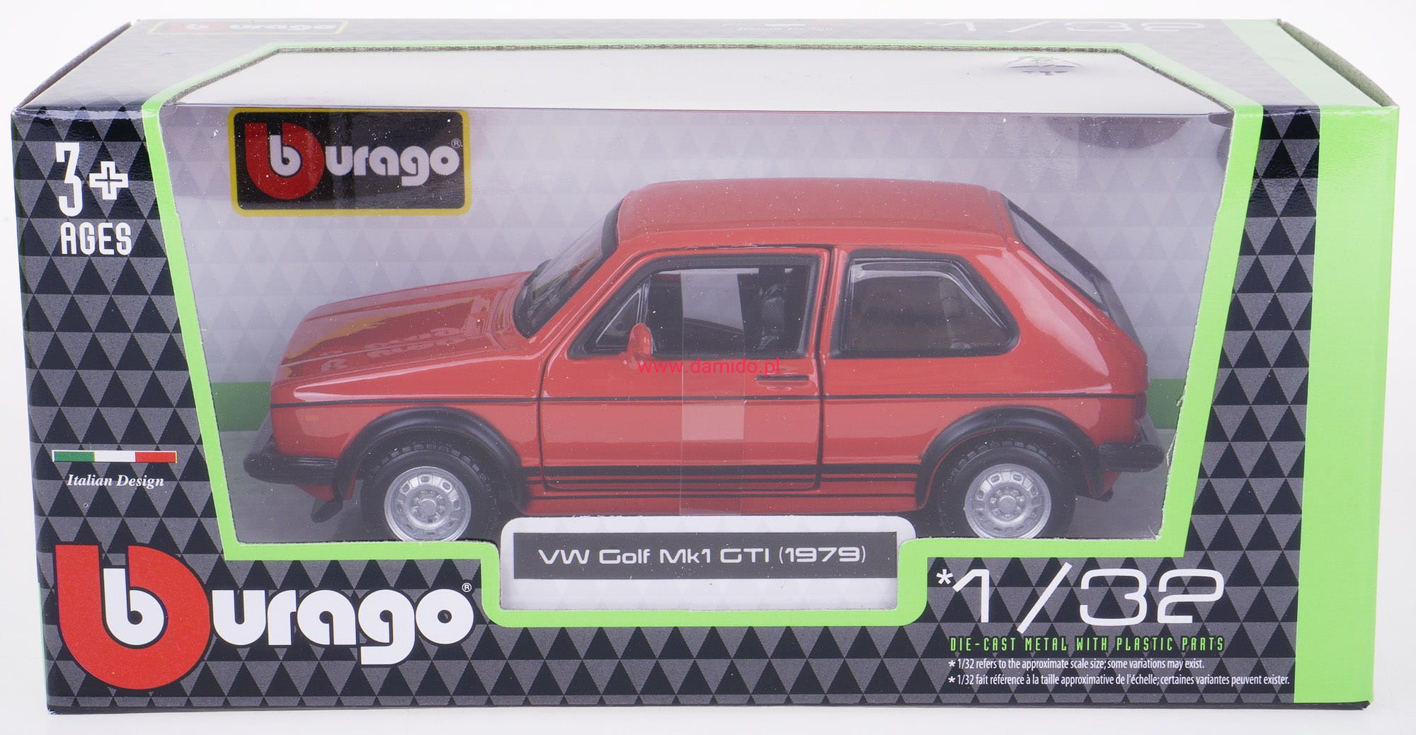 VOLKSWAGEN GOLF 1 GTI 1979 MODEL METALOWY BBURAGO 1:32 CZERWONY