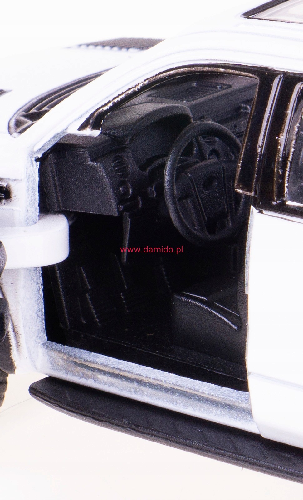 Model posiada otwierane drzwi przez, które można zajrzeć do wnętrza modelu oraz posiada gumowe opony.