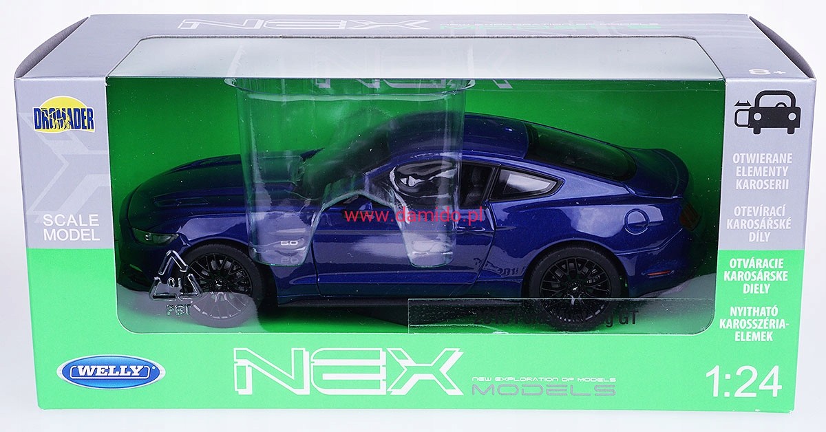 Model FORD MUSTANG GT 2024 wykonany jest w skali 1:25 firmy WELLY.