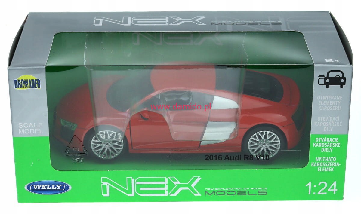 2016 AUDI R8 V10 MODEL METALOWY WELLY 1:24 CZERWONY