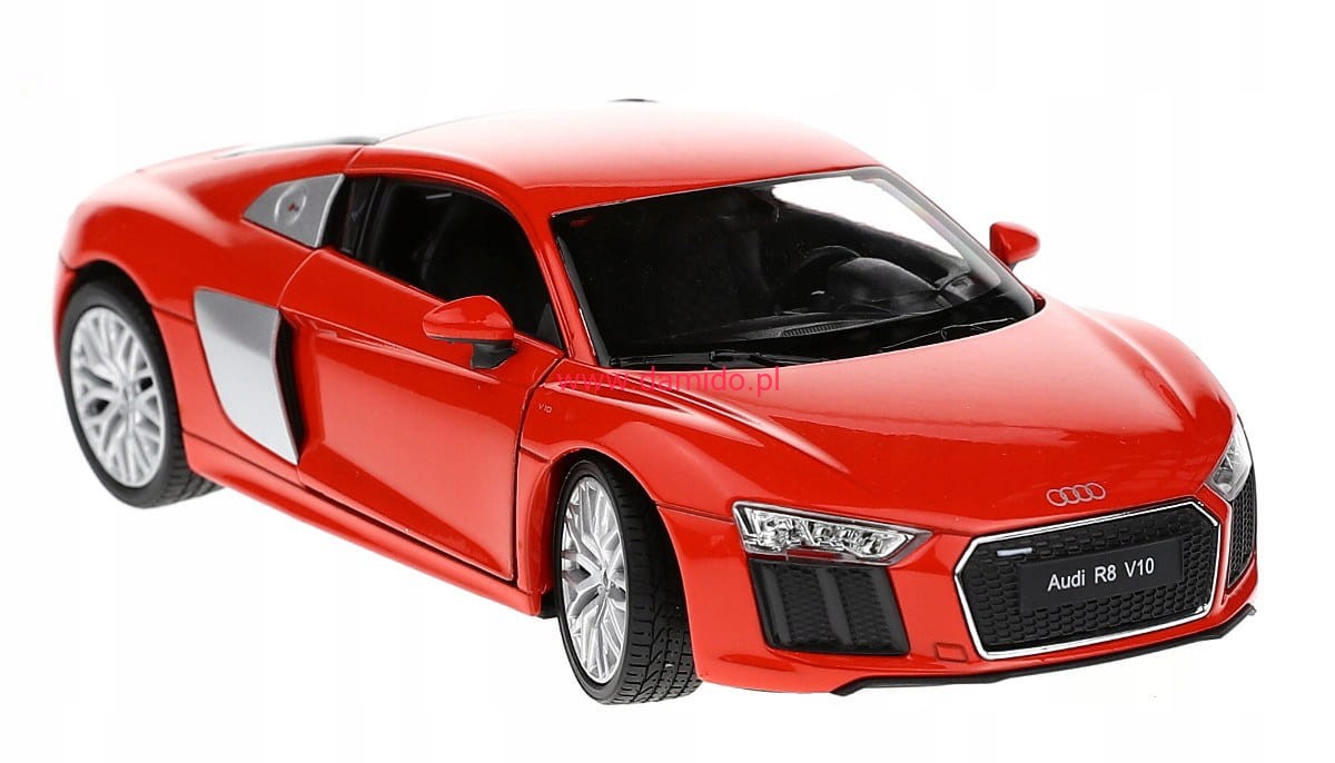 Model AUDI R8 COUPE w skali 1:32/39 wykonany został z metalu i plastiku na gumowych oponach.