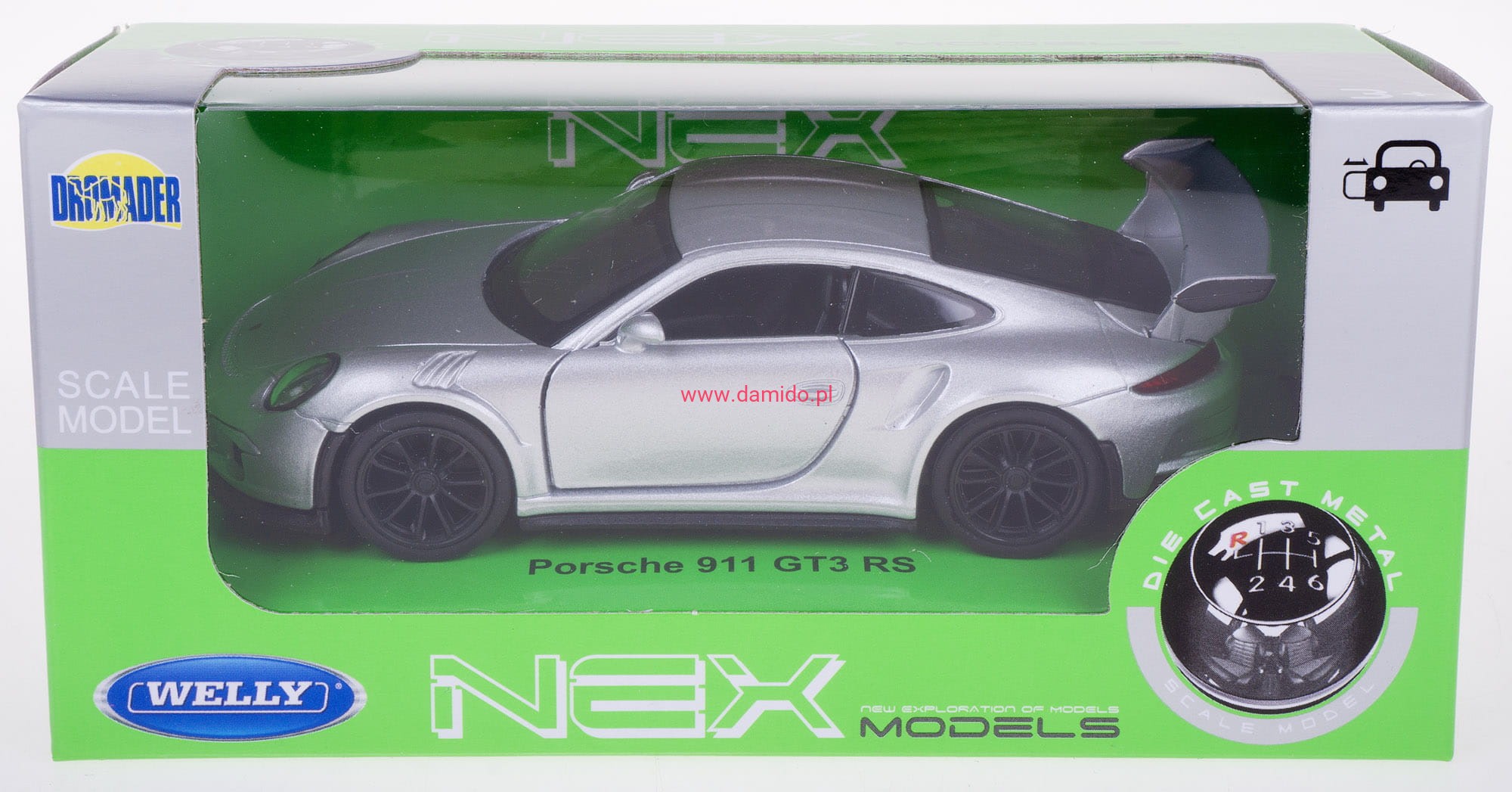 Model PORSCHE 911 GT3 RS wykonany jest w skali 1:34 firmy WELLY.
