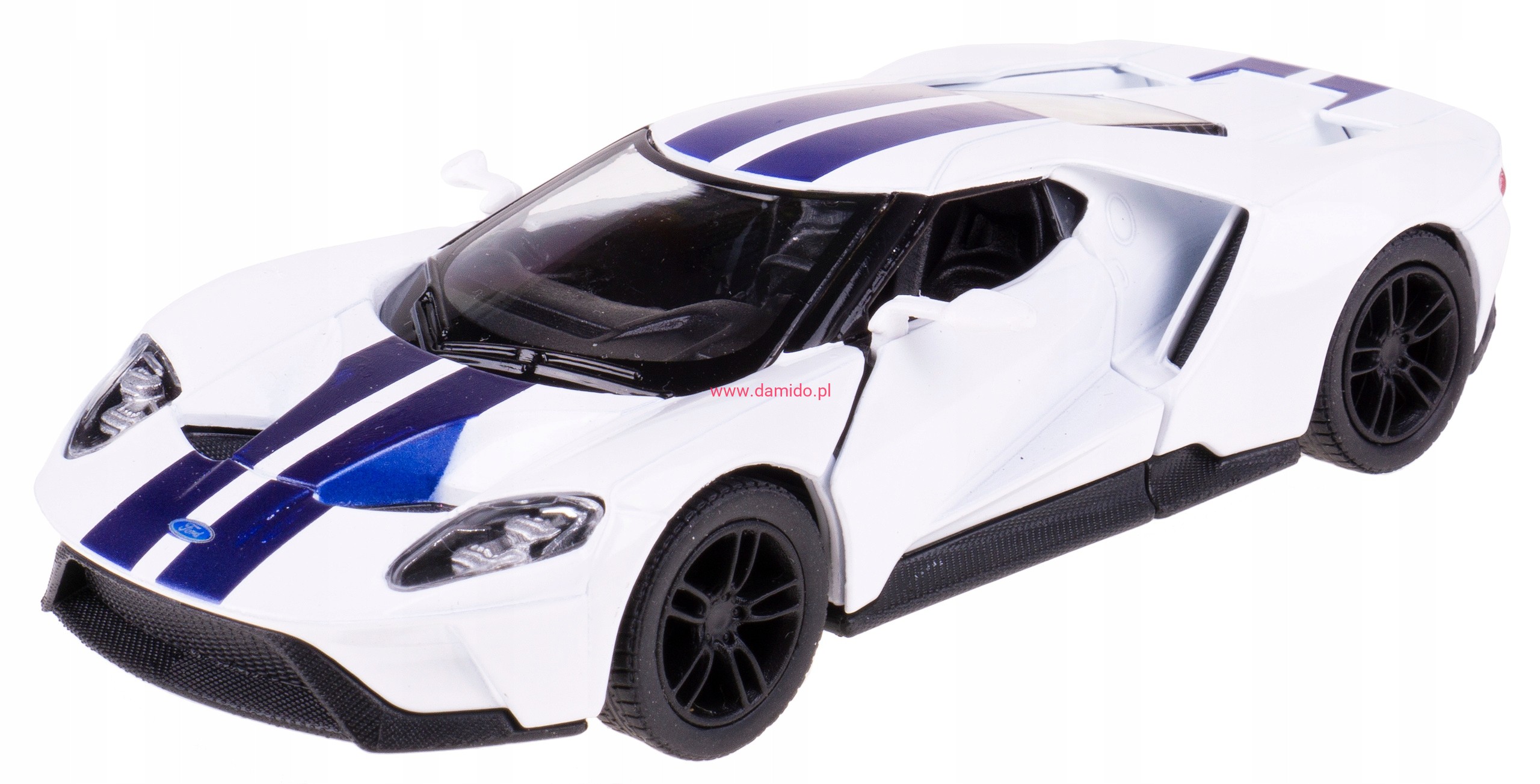 Model 2017 FORD GT wykonany z metalu i plastiku z napędem pull-back w skali 1:38.