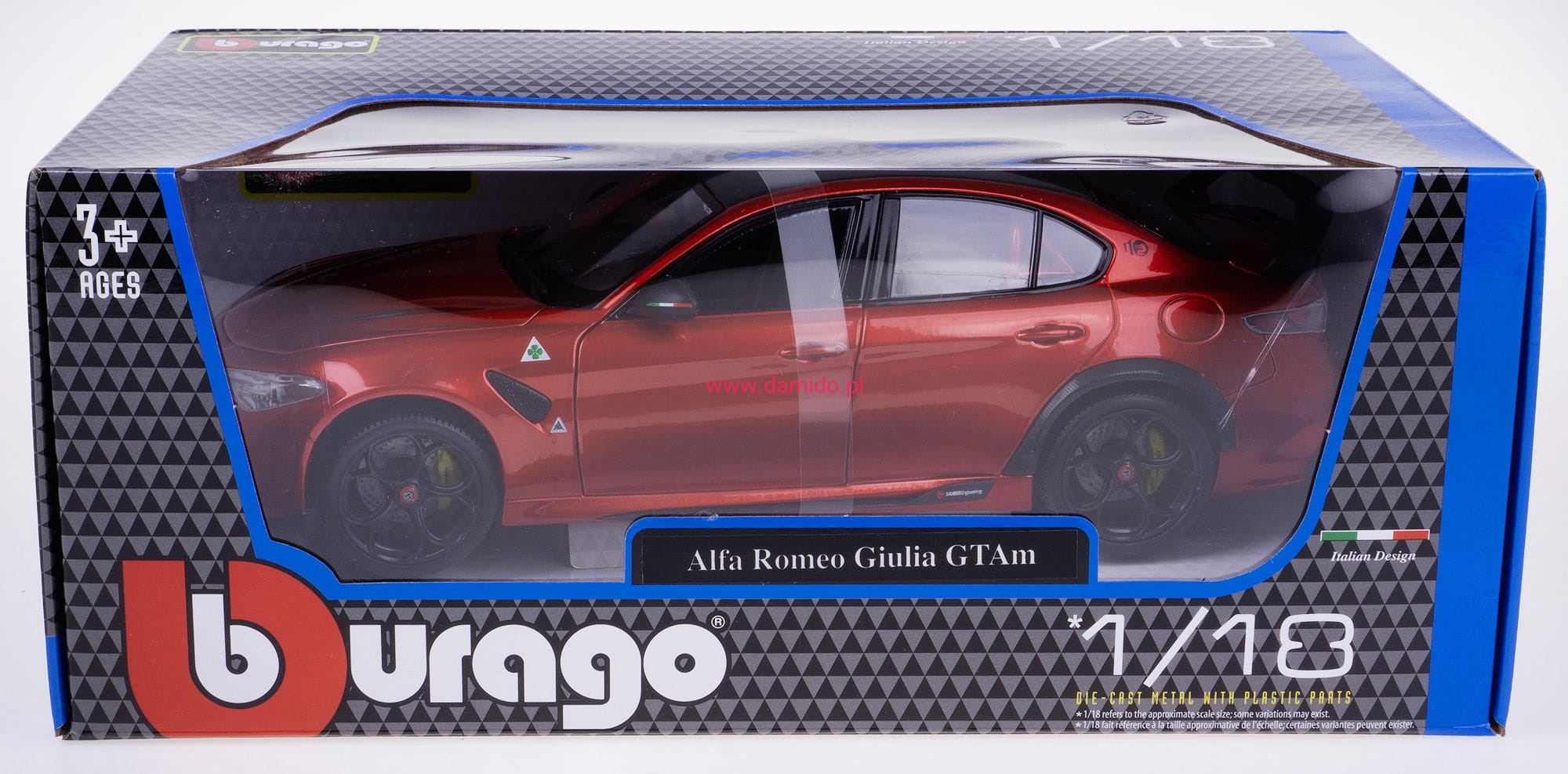 Model metalowy ALFA ROMEO GIULIA GTAm wykonany jest w skali 1:18 firmy BBURAGO.