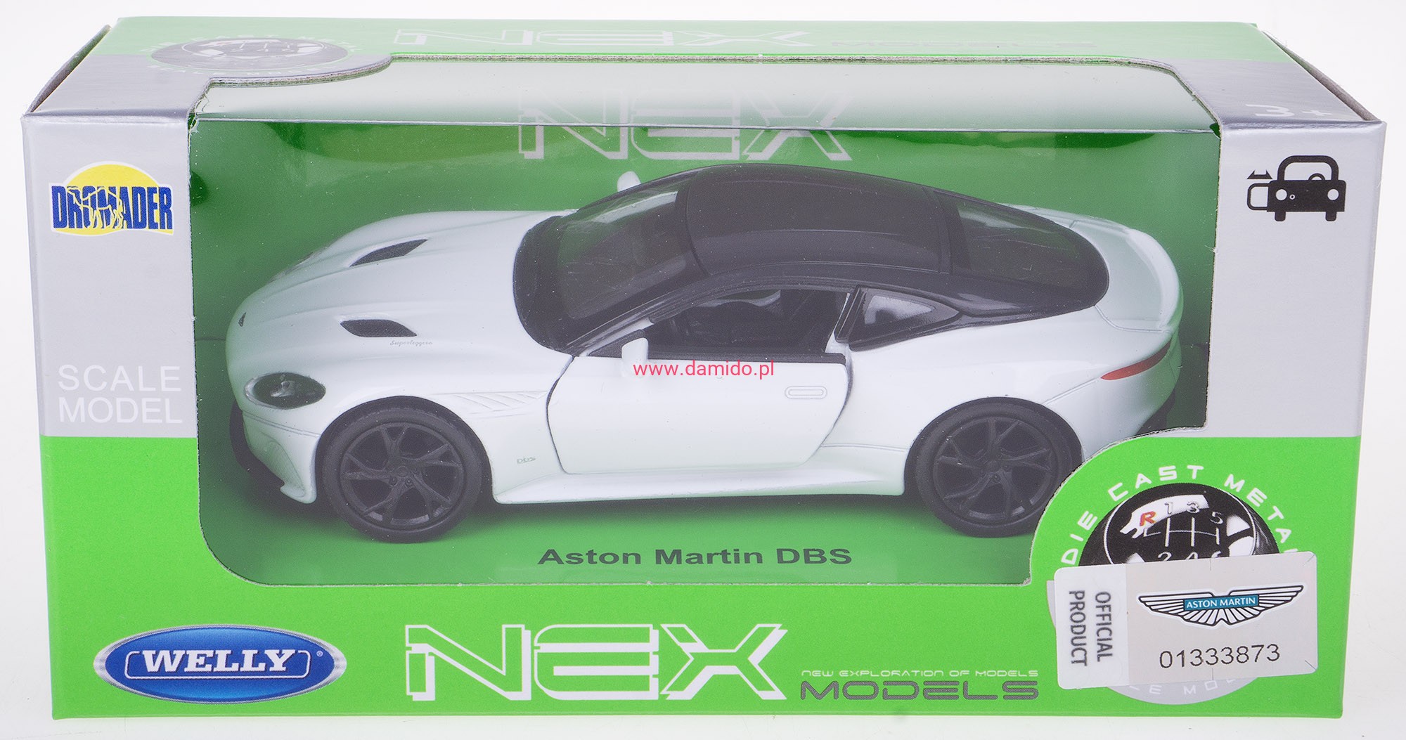 Model ASTON MARTIN DBS SUPERLEGGERA wykonany jest w skali 1:34\39 firmy WELLY.
