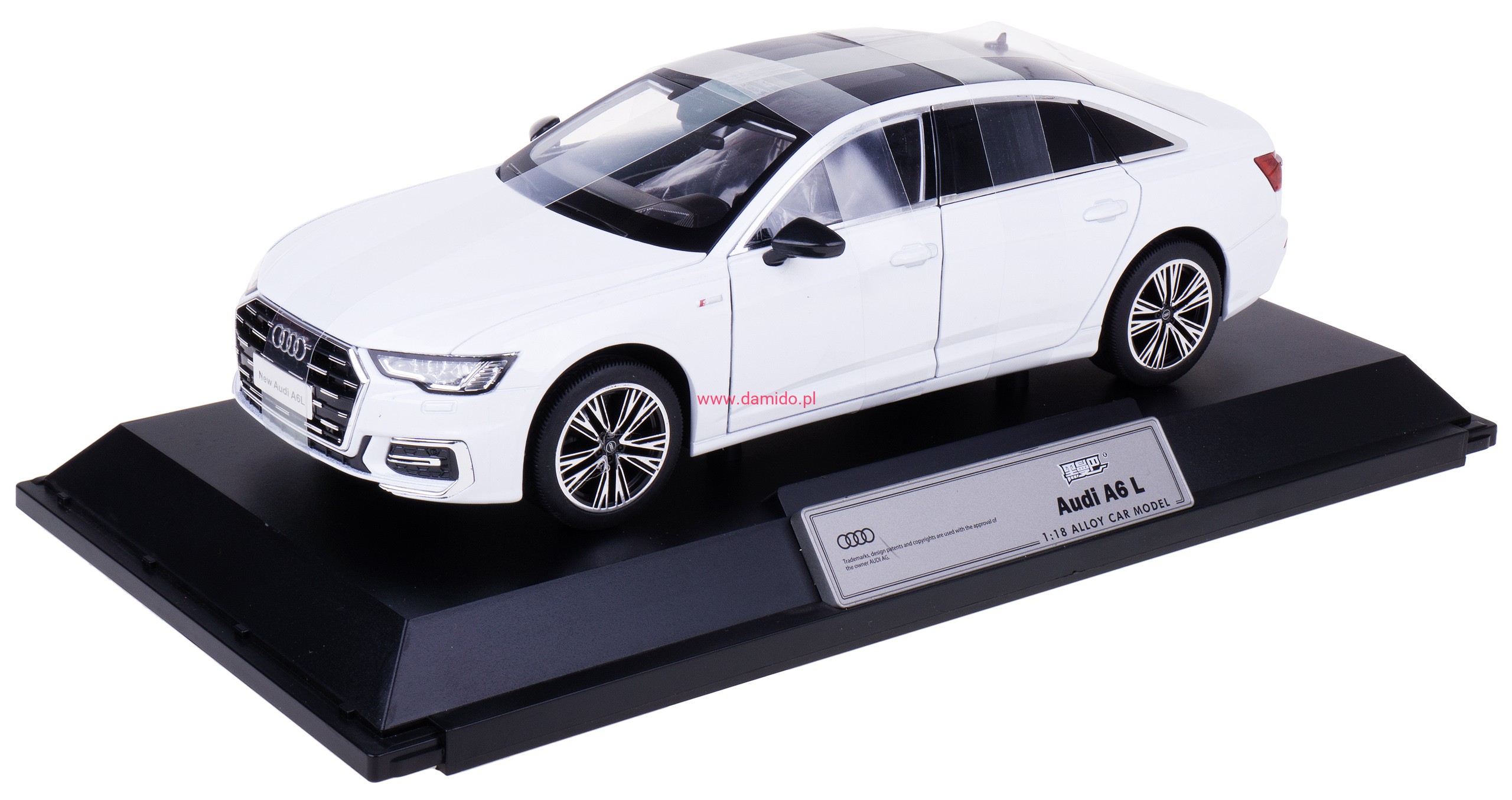AUDI A6 L MODEL METALOWY 1:18 ŚWIATŁO DŹWIĘKI OTWIERANE ELEMENTY BIAŁY