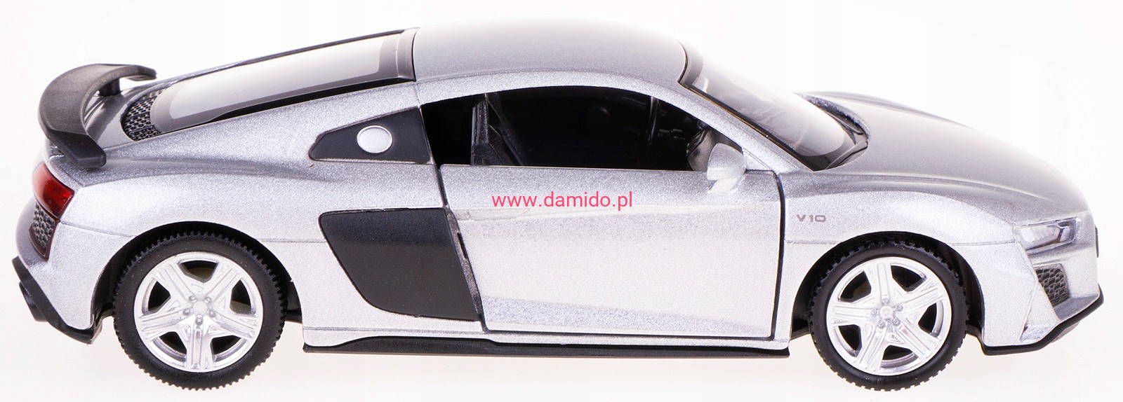 Model AUDI R8 COUPE w skali 1:32/39 wykonany został z metalu i plastiku na gumowych oponach.