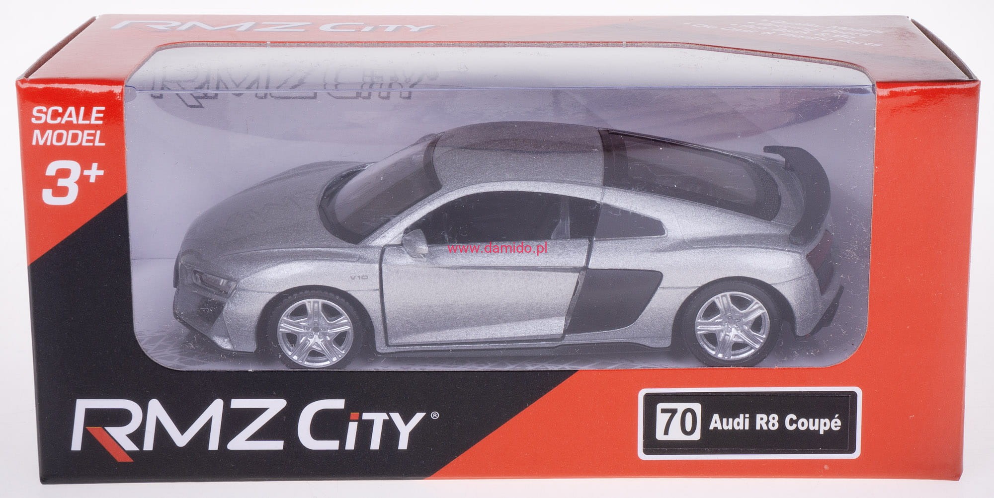 AUDI R8 COUPE MODEL METALOWY 1:32/39 RMZ CITY SREBRNY K-882