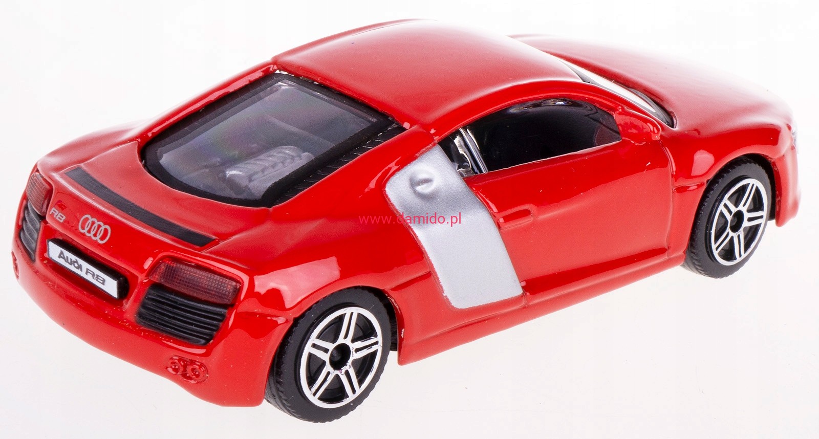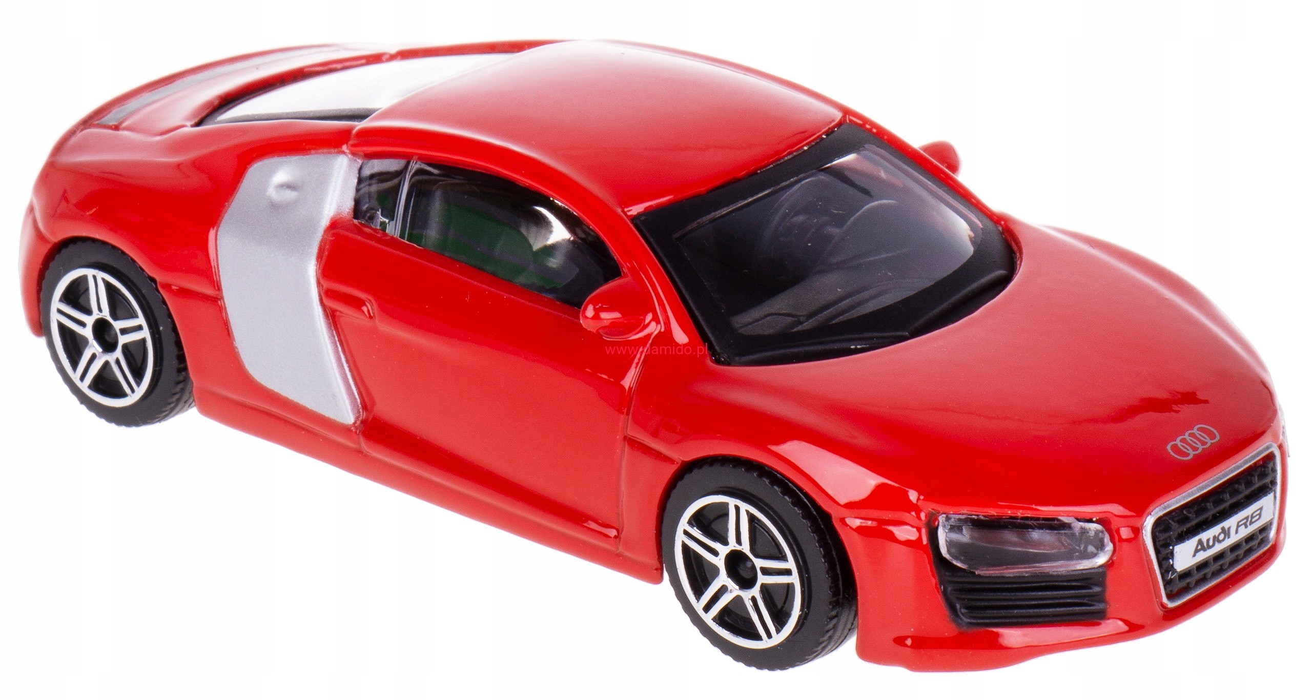 Model AUDI R8 COUPE w skali 1:32/39 wykonany został z metalu i plastiku na gumowych oponach.