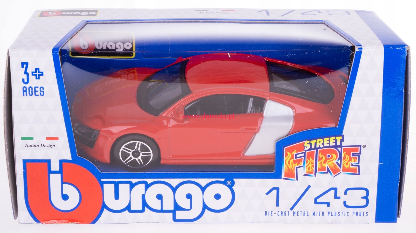 AUDI R8 METALOWY MODEL FIRMY BBURAGO W SKALI 1:43 CZERWONE #204