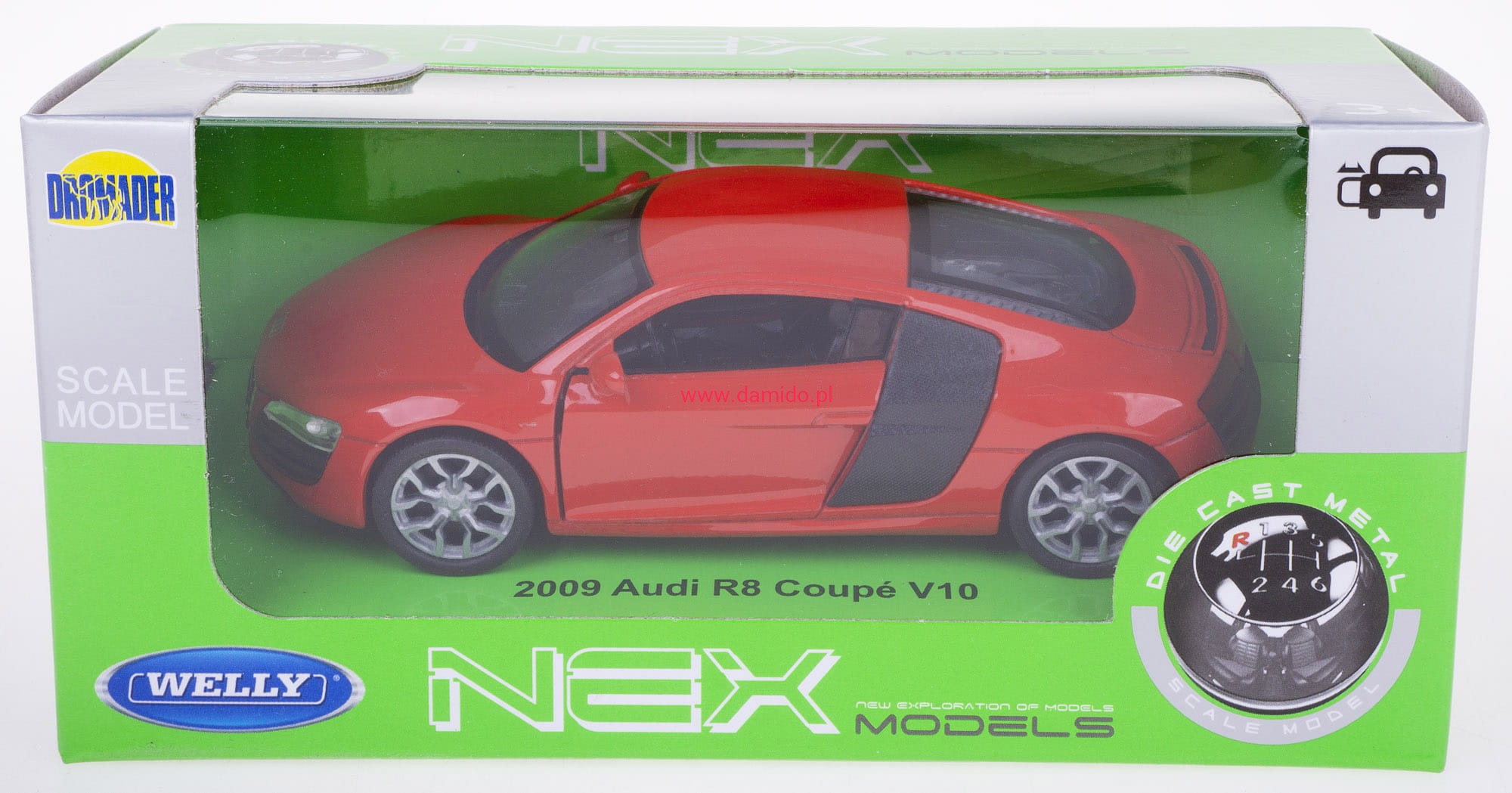 2009 AUDI R8 V10 COUPE MODEL METALOWY 1:34/39 WELLY CZERWONY