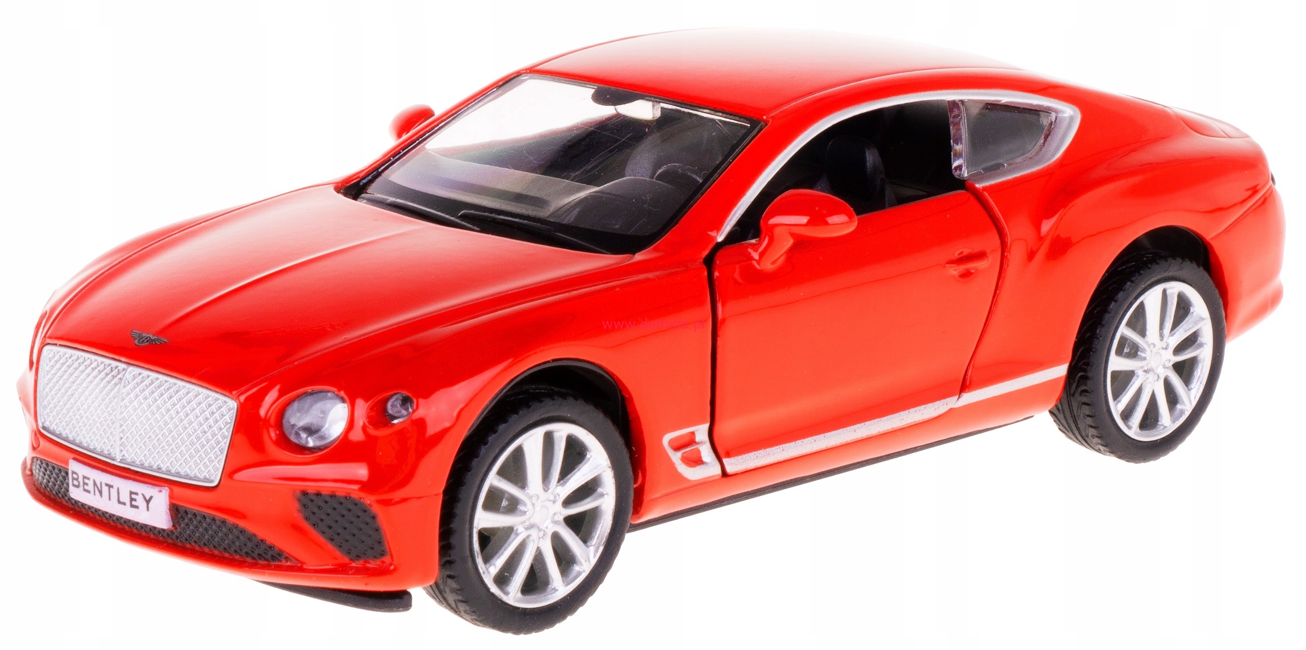 Model BENTLEY CONTINENTAL GT 2018 w skali 1:32/39 z napędem ręcznym - wykonany został z metalu i plastiku na gumowych oponach.