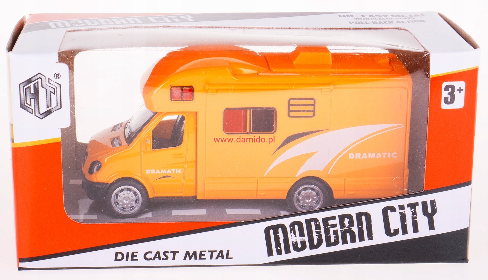 CAMPER WÓZ CAMPINGOWY METAL/PLASTIK Z NAPĘDEM PULL-BACK POMARAŃCZOWY HXDS49