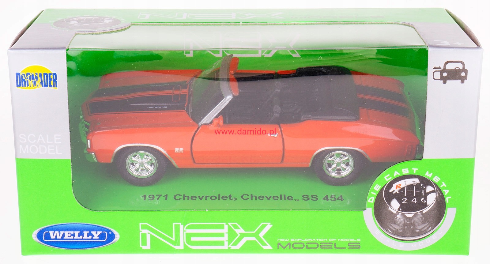 Model CHEVROLET CHEVELLE SS 454 wykonany jest w skali 1:34/39 firmy WELLY.