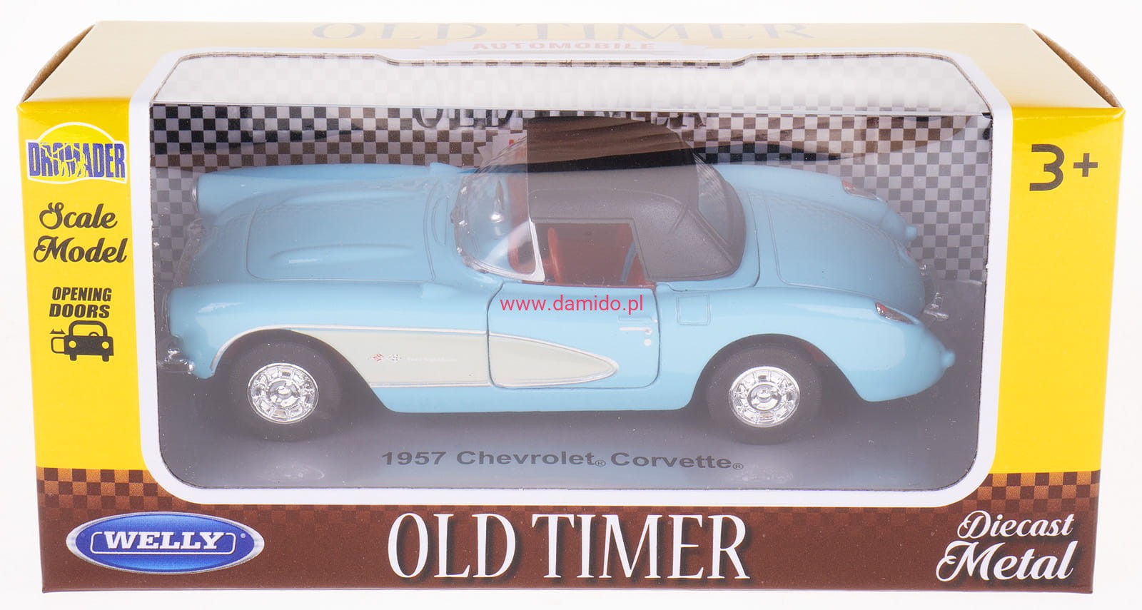CHEVROLET CORVETTE 1957 MODEL METALOWY WELLY 1:34 BŁĘKIT