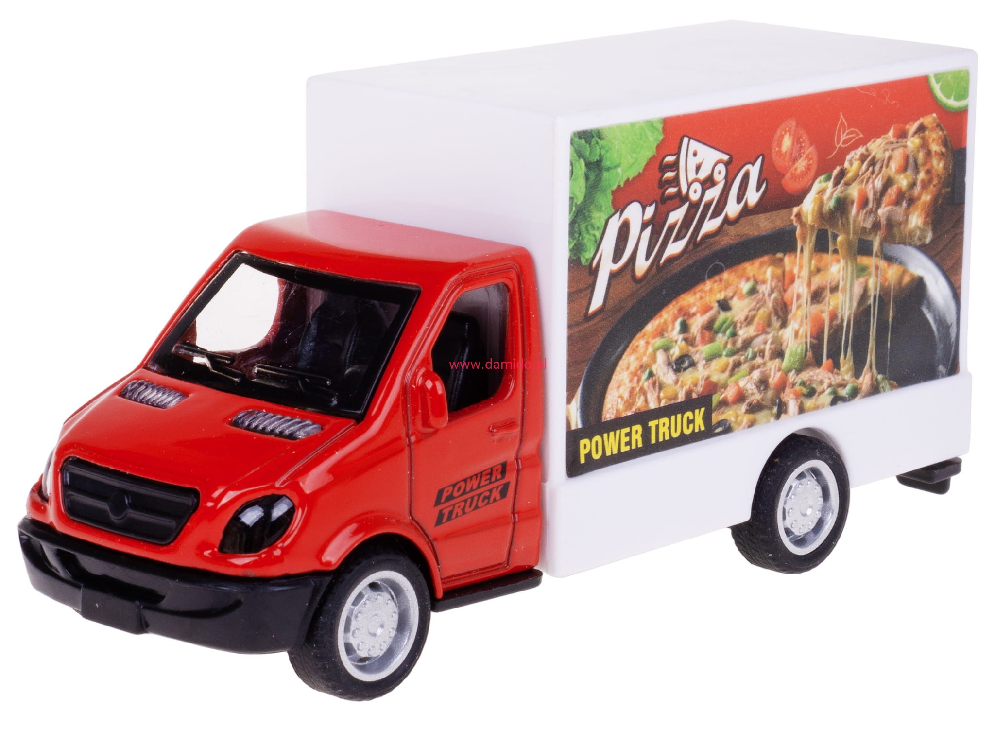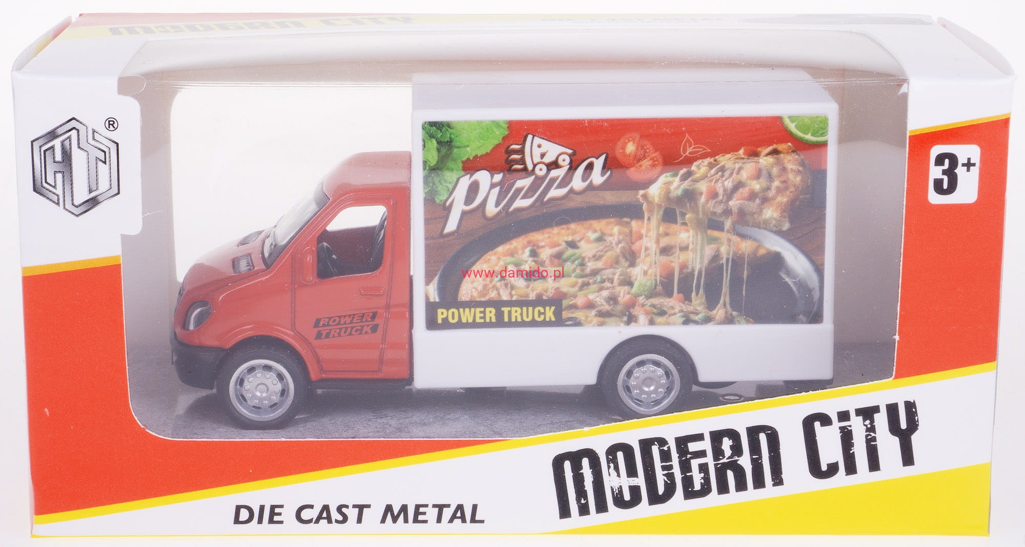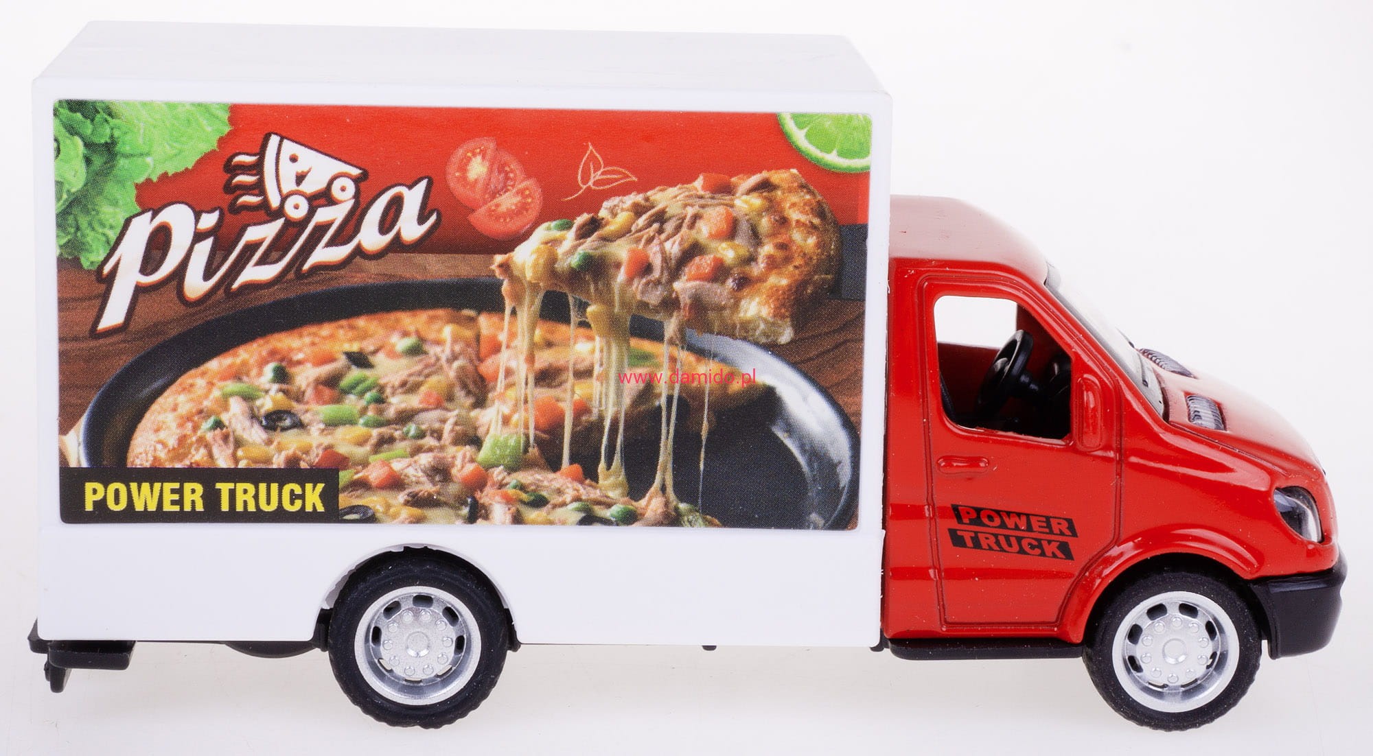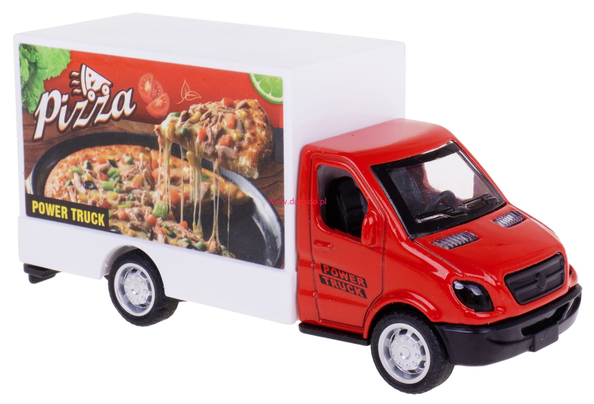 Model metalowy ciężarówki z plastikowy kontenerem z napędem pull-back,