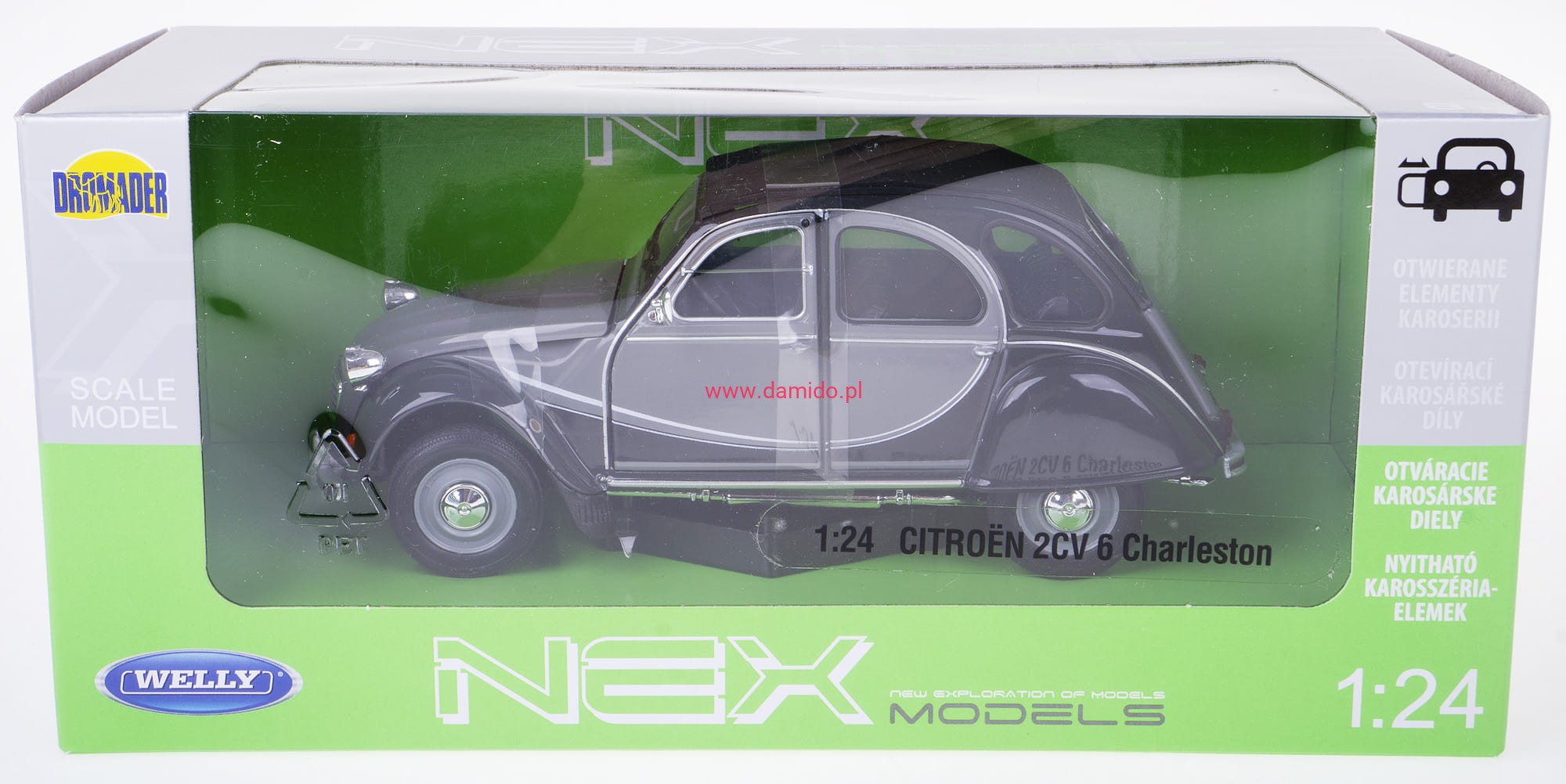 Model CITROEN 2CV 6 CHARLESTON wykonany jest w skali 1:24 firmy WELLY. Modele charakteryzują się znakomitą jakością i wiernością wykonania.