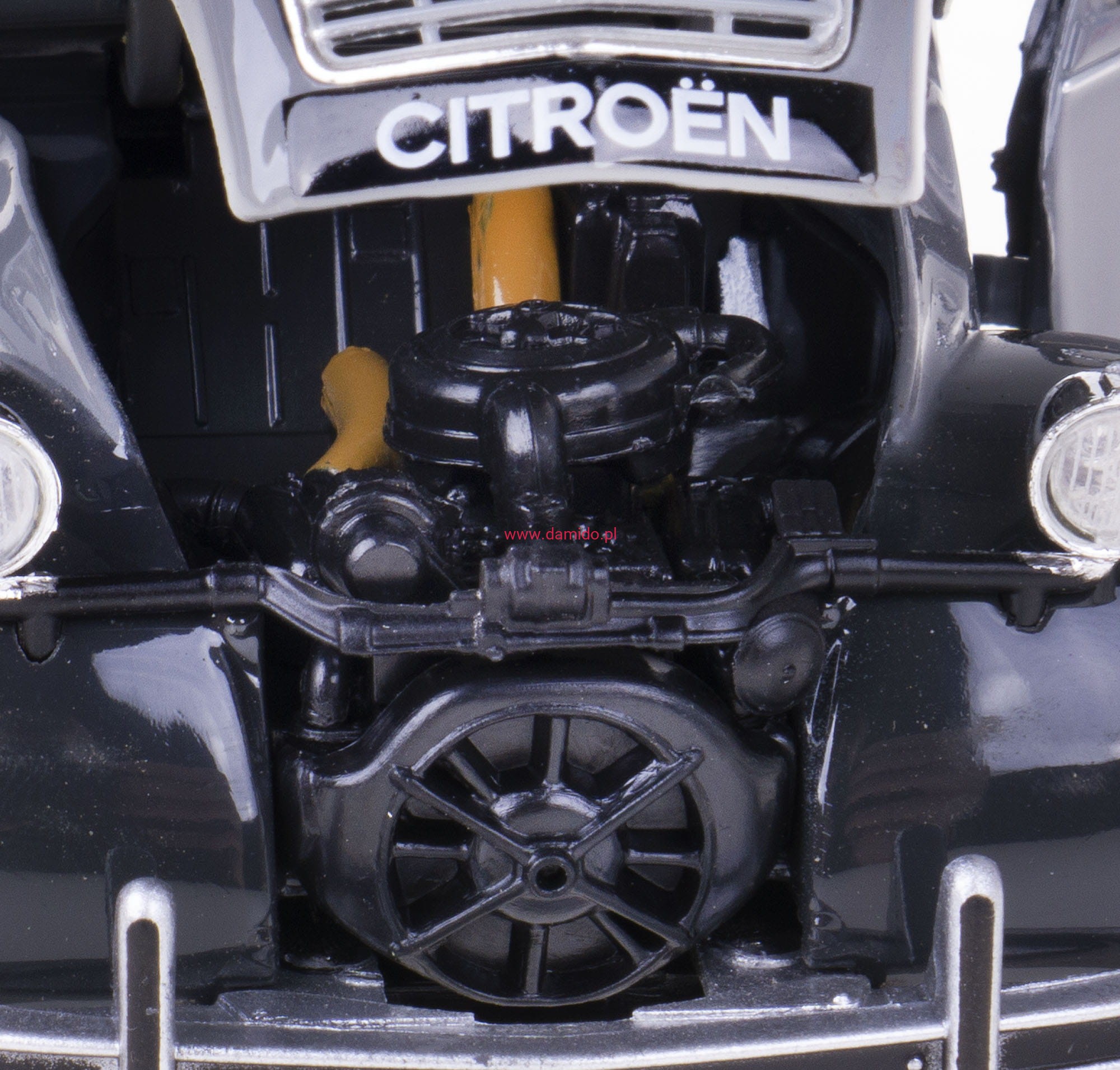 Posiada otwierane drzwi oraz maskę . Model malowany jest lakierem samochodowym.