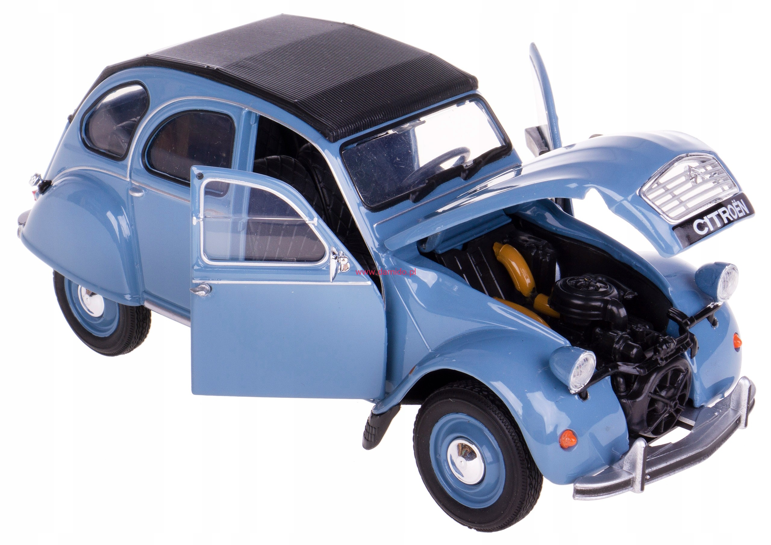Model CITROEN 2CV wykonany jest w skali 1:24 firmy WELLY. Model charakteryzuje się znakomitą jakością i wiernością wykonania.