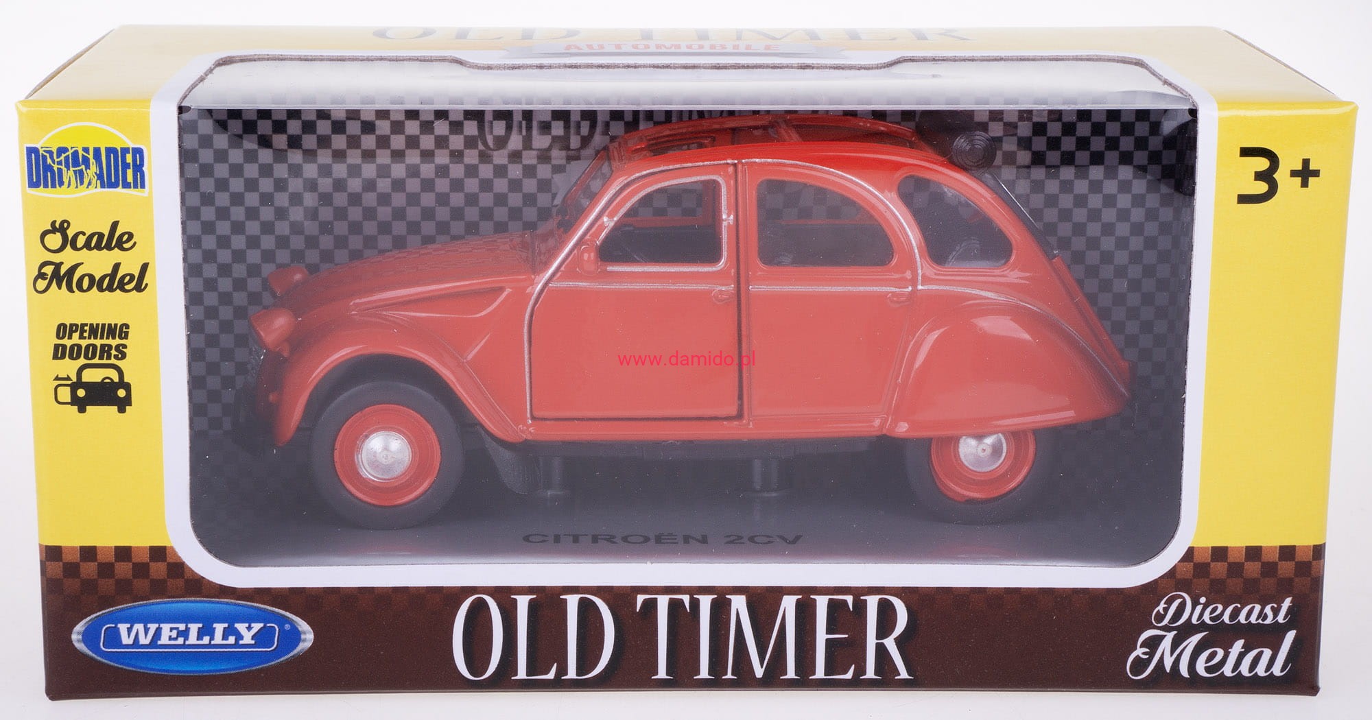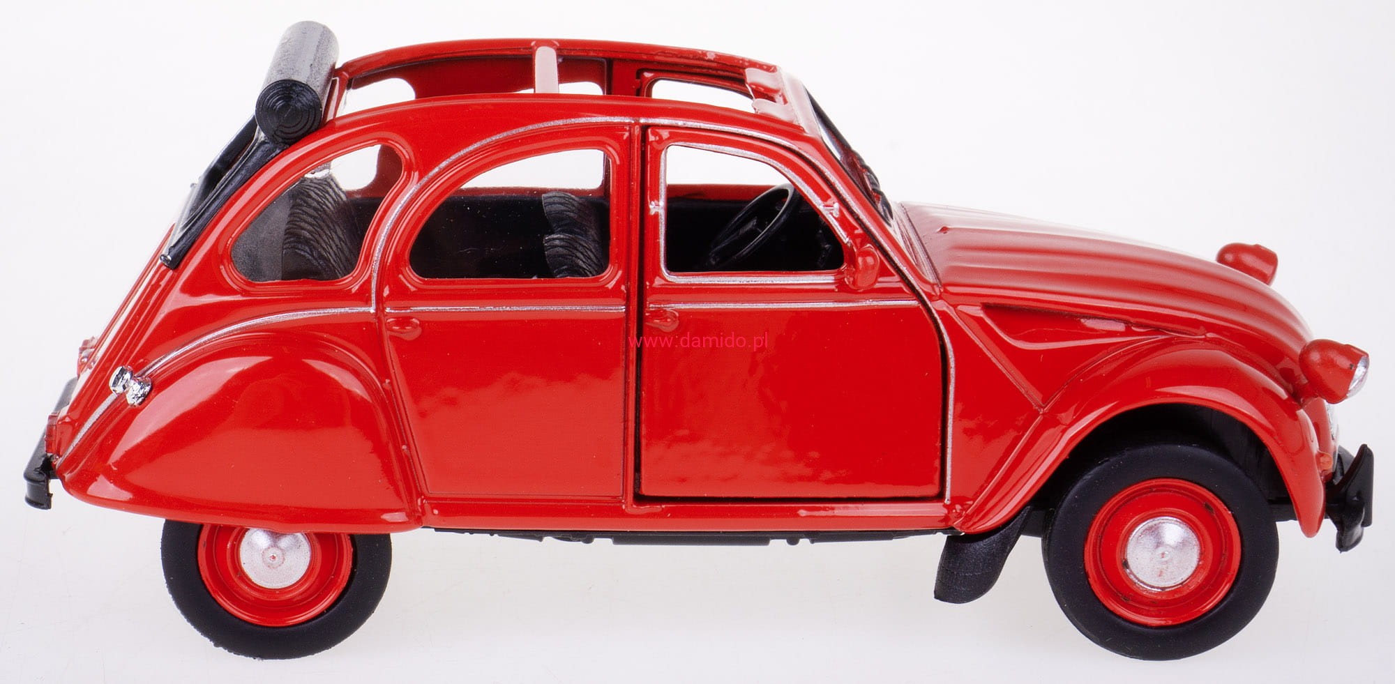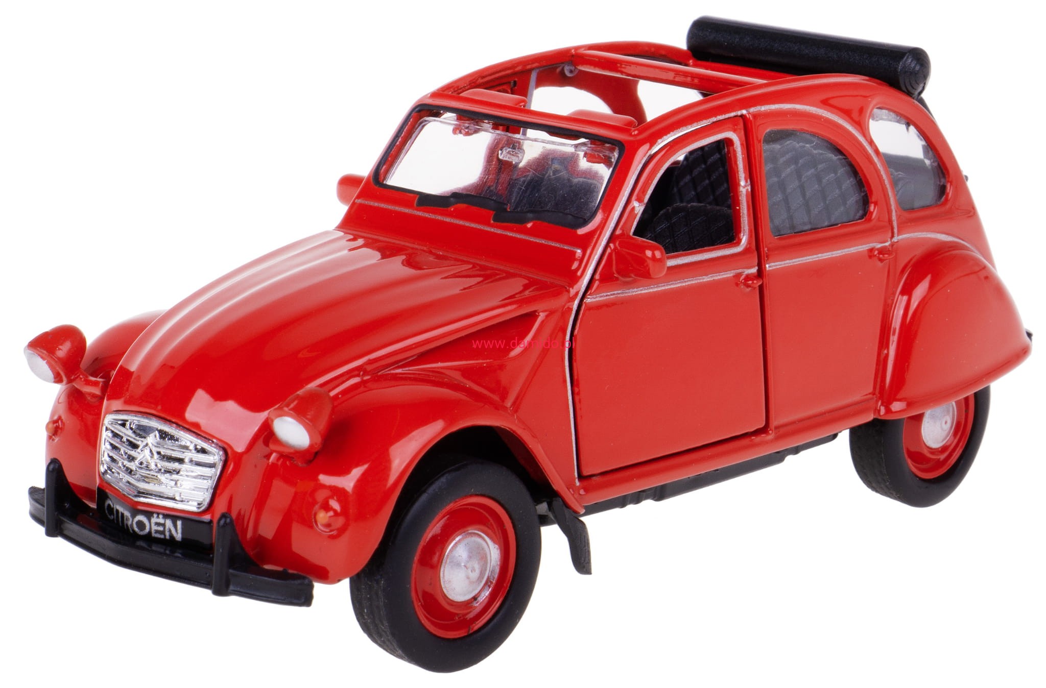 CITROEN 2CV Z OTWARTYM DACHEM MODEL METALOWY WELLY 1:34 CZERWONY