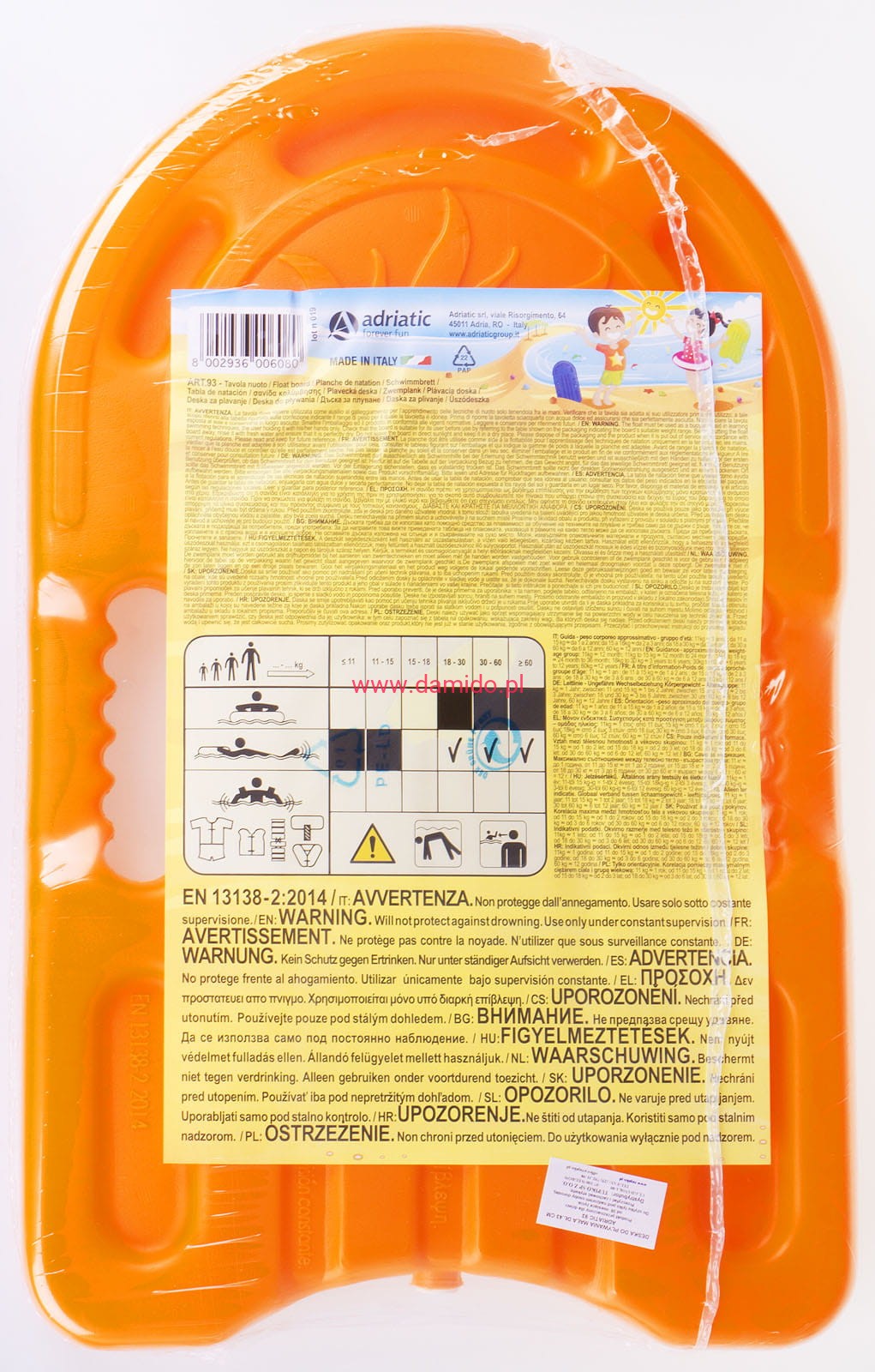 DESKA DO NAUKI PŁYWANIA MAŁA 43 CM NA BASEN WODĘ ADRIATIC POMARAŃCZOWA 6080