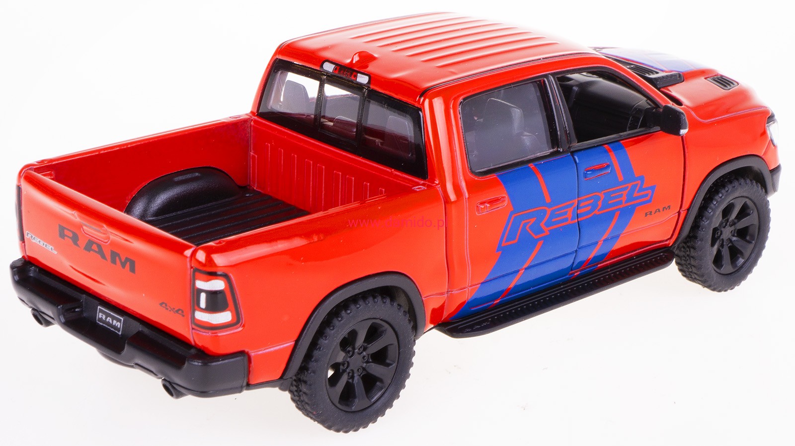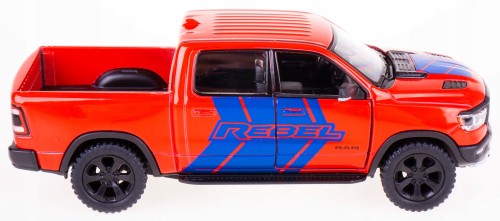 Model metalowy DODGE RAM 1500 REBEL w skali 1:46 z napędem typu ''Pull Back". Model wykonany z metalu i plastiku.