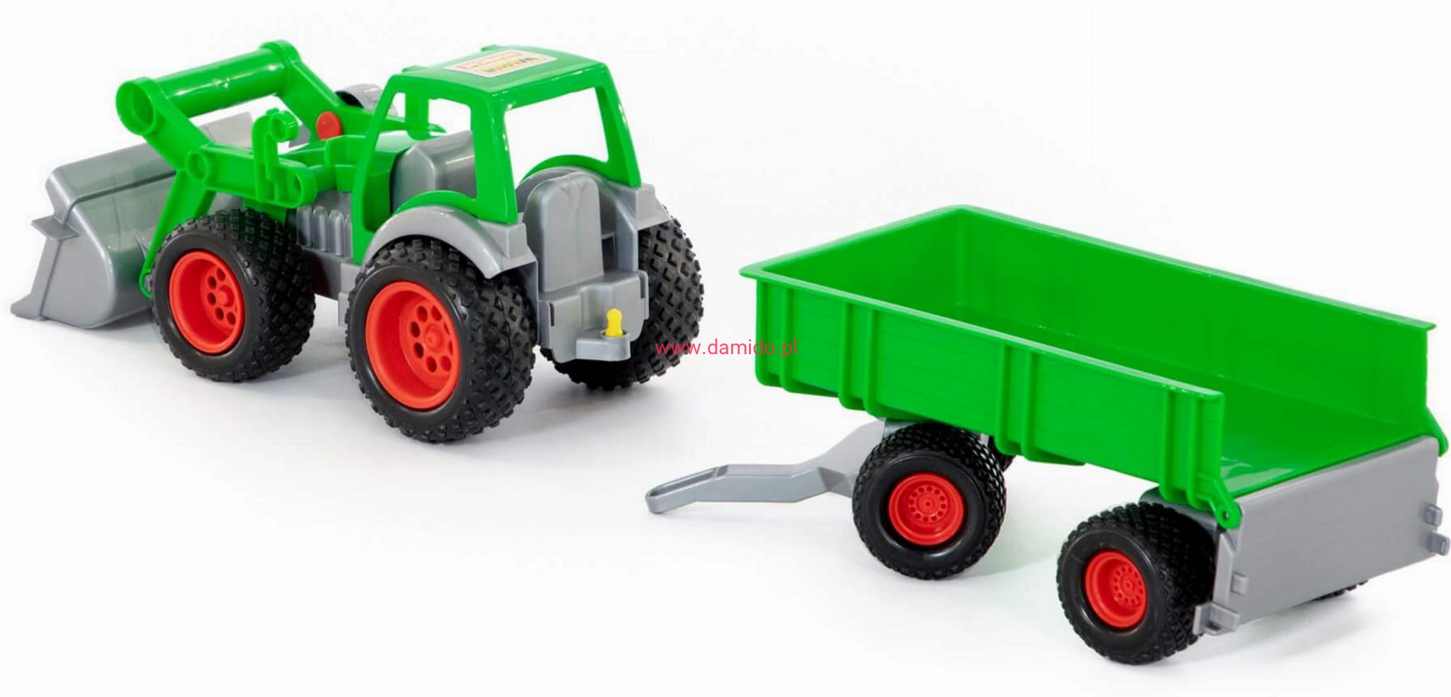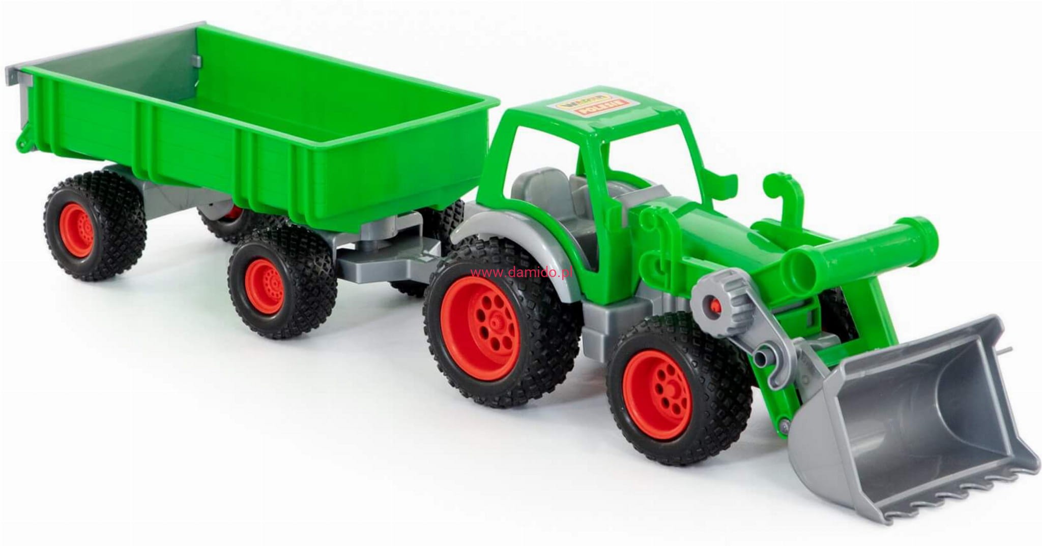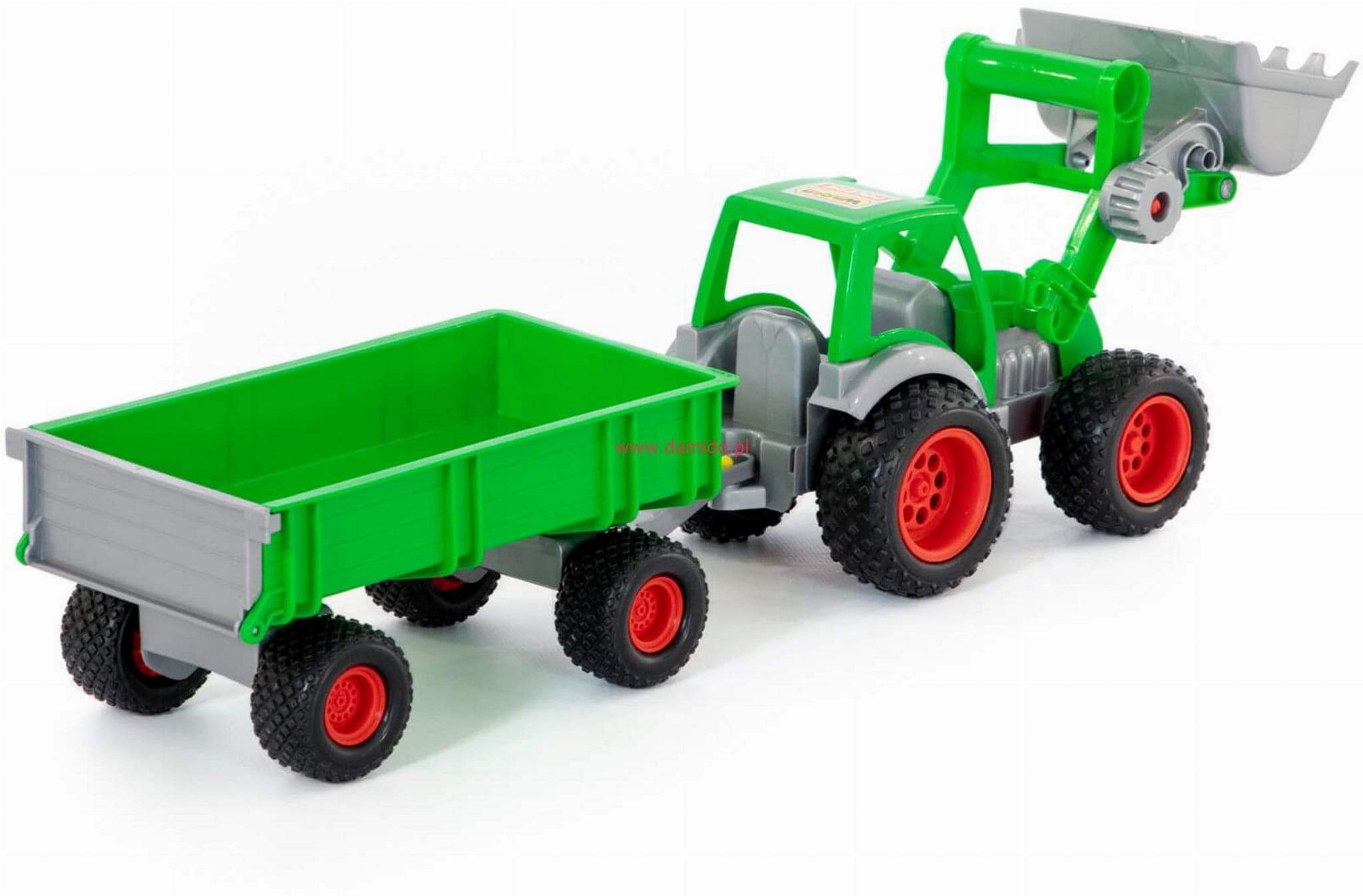 DUŻY TRAKTOR ŁADOWARKA Z PRZYCZEPĄ FARMER SZARY