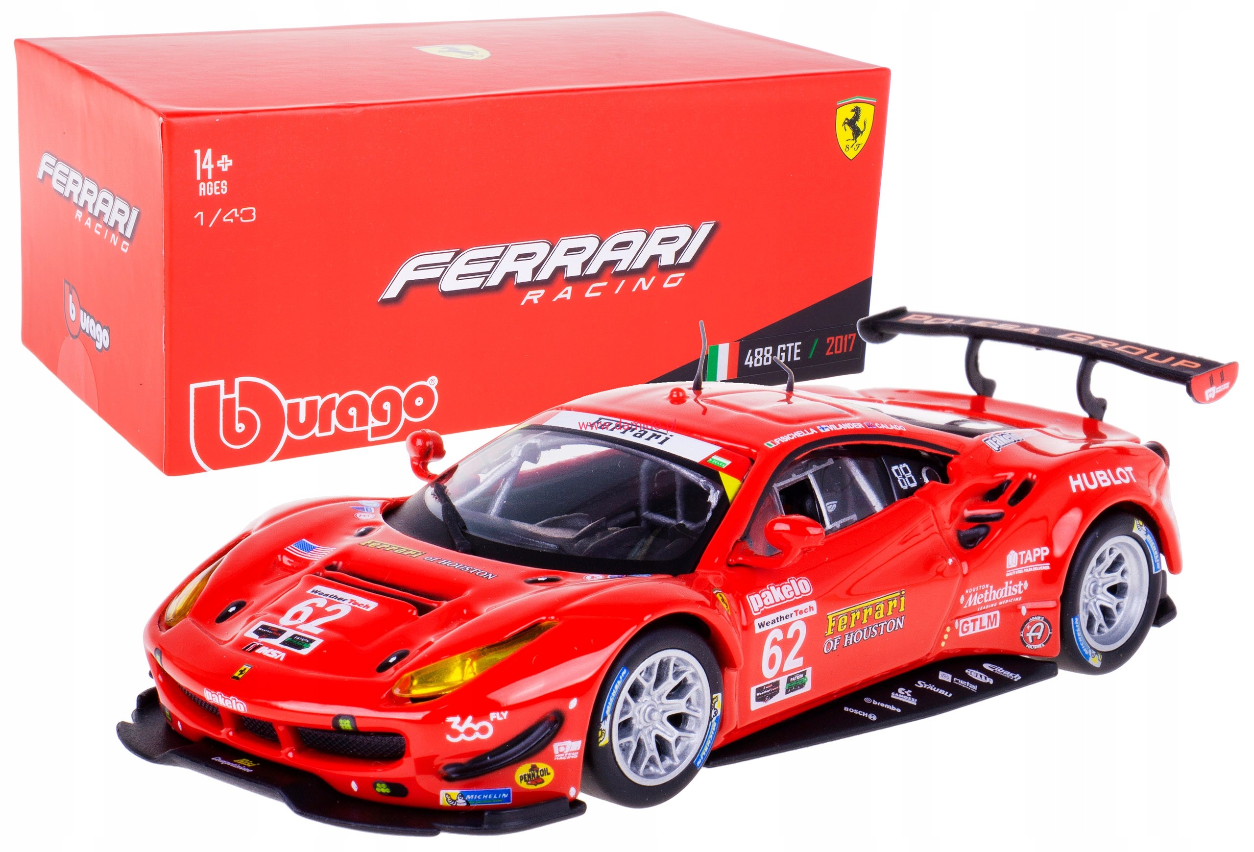 FERRARI 488 GTE 2017 model metalowy w skali 1:43 #62 firmy BBURAGO.