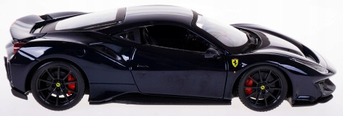 Model FERRARI 488 PISTA wykonany został z metalu i plastiku na gumowych oponach w skali 1:24 firmy BBURAGO.