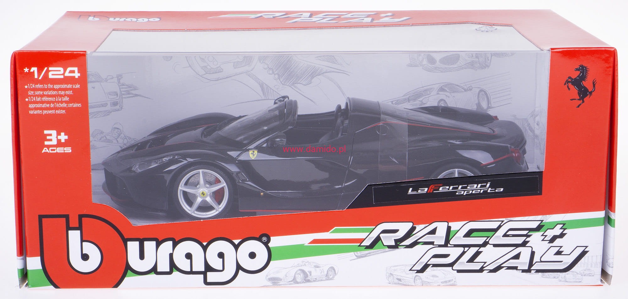 Model FERRARI LAFERRARI APERTA wykonany jest w skali 1:24 firmy BBURAGO. Modele charakteryzują się znakomitą jakością i wiernością wykonania.