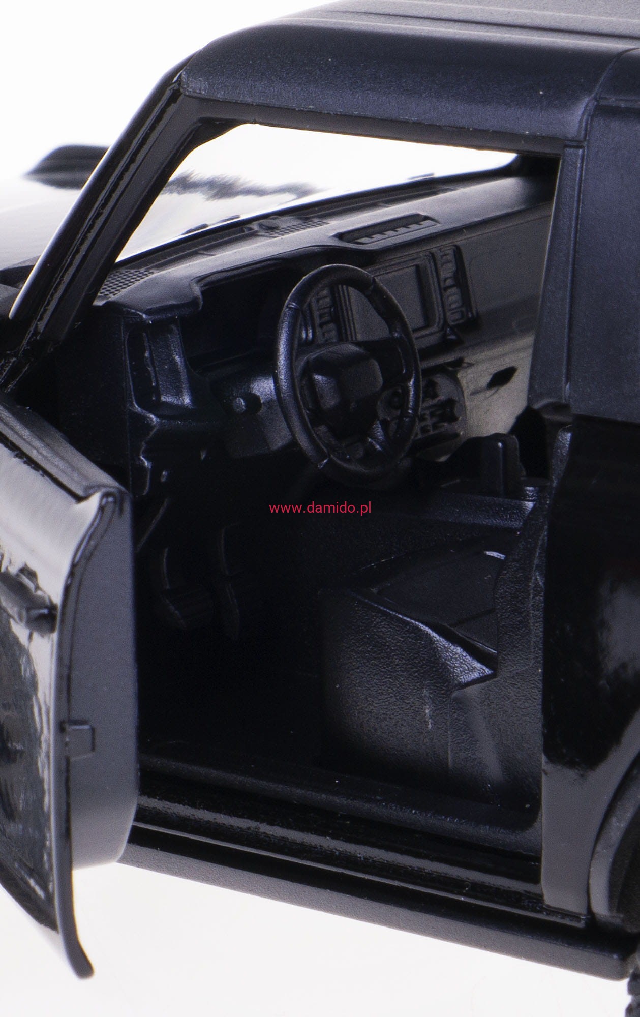 Posiada otwierane boczne drzwi, przez które można zajrzeć do wnętrza modelu