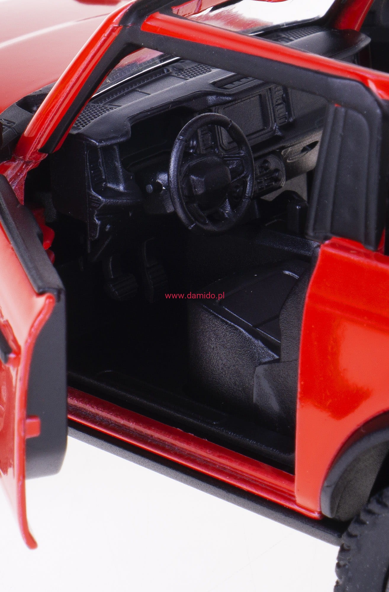 Posiada otwierane boczne drzwi, przez które można zajrzeć do wnętrza modelu