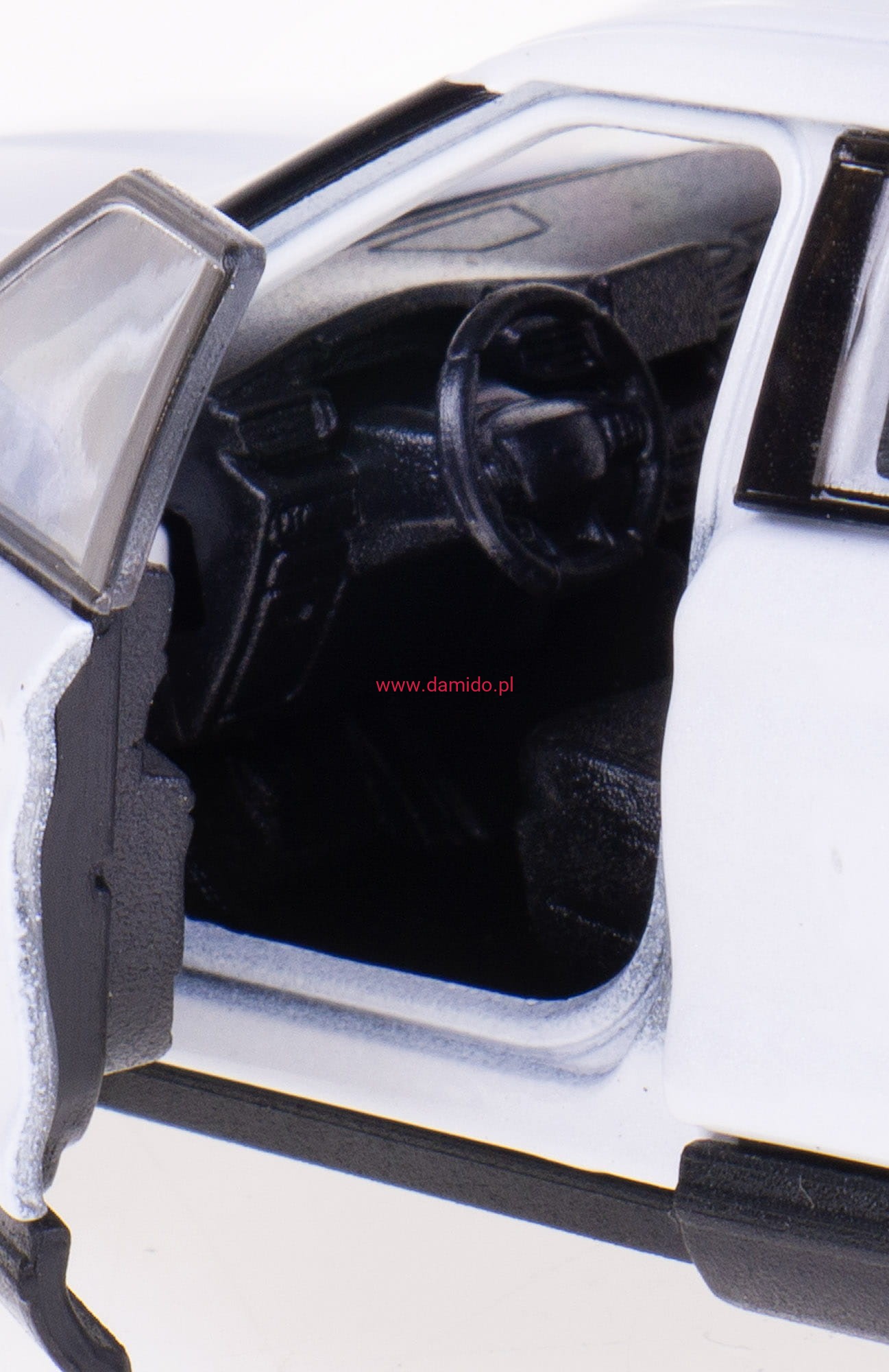 Model wykonany jest z metalu z dodatkiem plastiku. Posiada otwierane drzwi oraz gumowe opony.