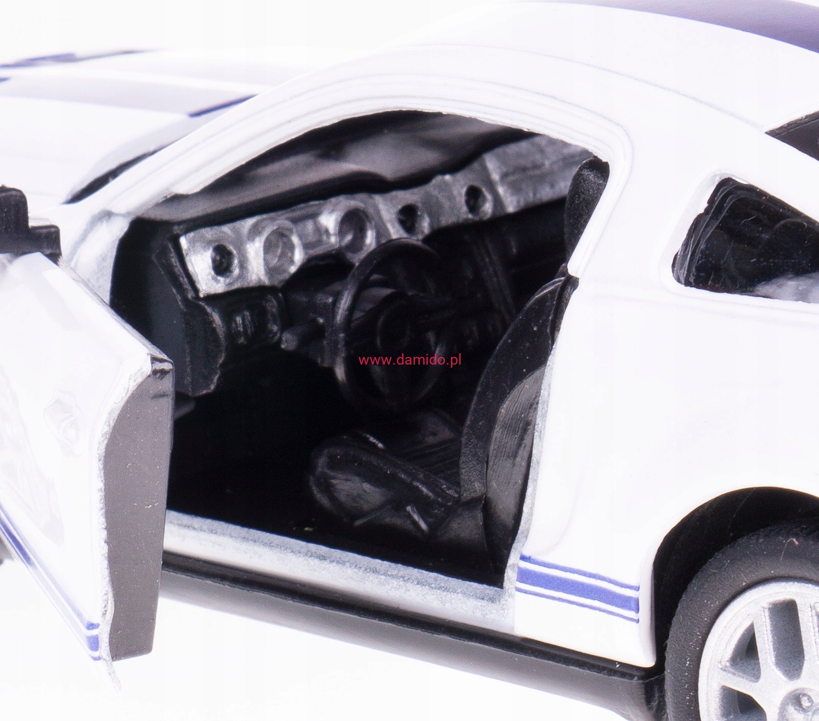 Model FORD SHELBY GT500 wykonany z metalu i plastiku z napędem pull-back w skali 1:38.