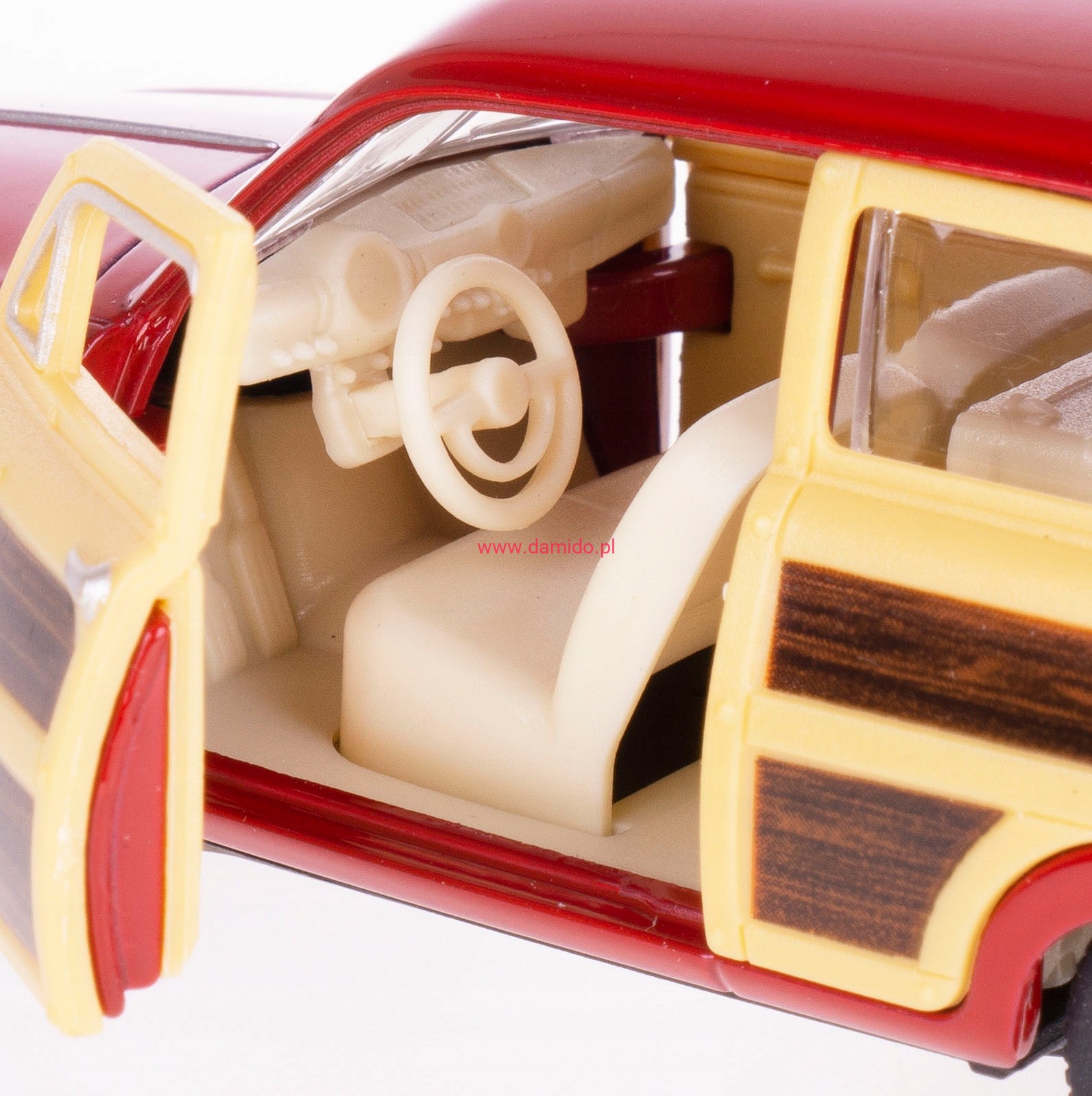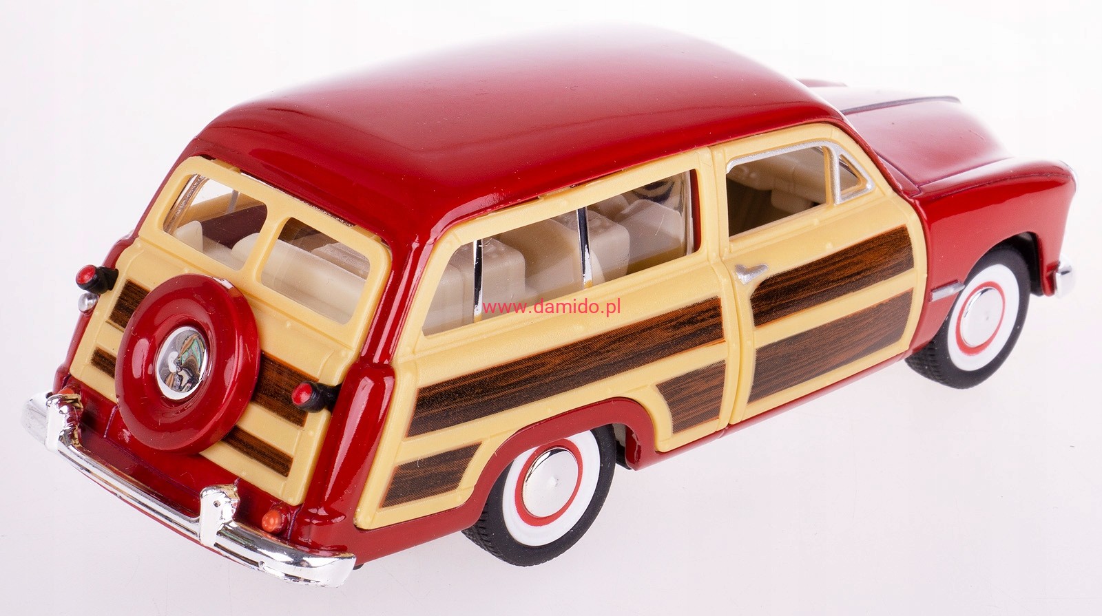 Model FORD WOODY WAGON 1949 wykonany jest z metalu i plastiku z napędem pull-back w skali 1:40