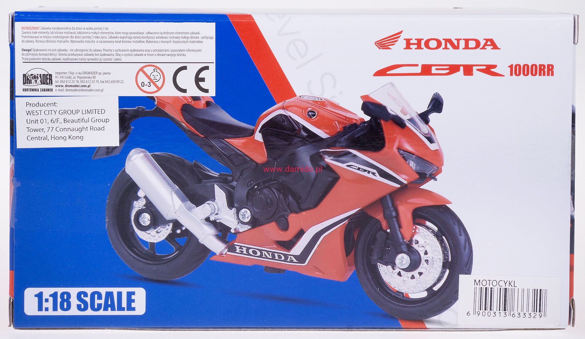 Model HONDA CBR1000RR wykonany jest z plastiku i metalu na gumowych oponach w skali 1:18.
