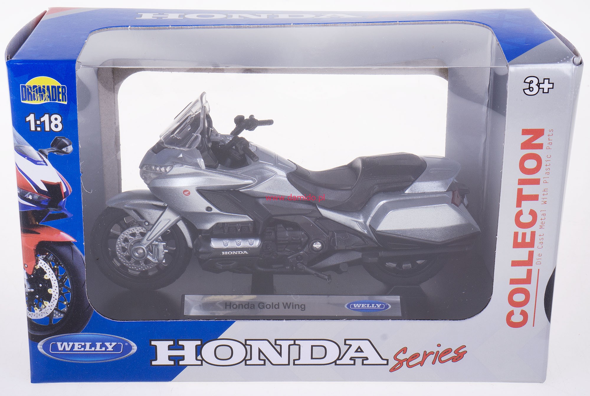 HONDA GL1800 GOLD WING MODEL WELLY MOTOR 1:18 SREBRNY