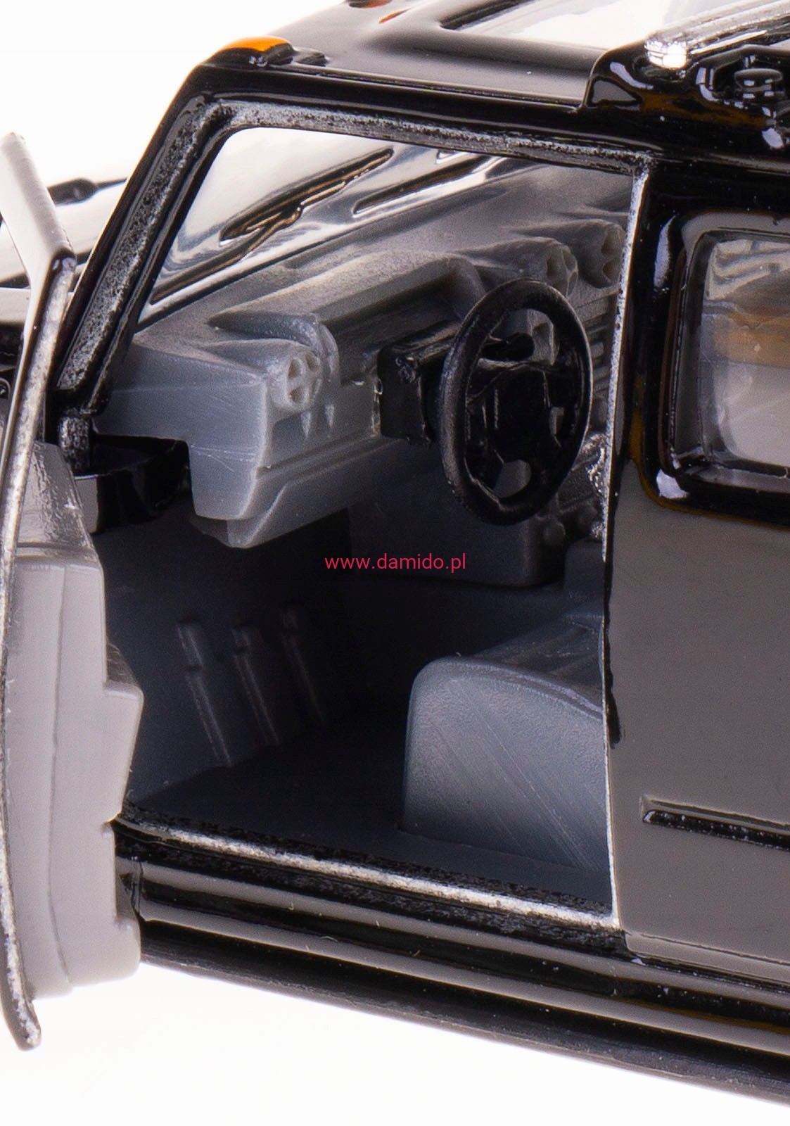 Model posiada otwierane drzwi przez, które można zajrzeć do wnętrza modelu oraz posiada gumowe opony.