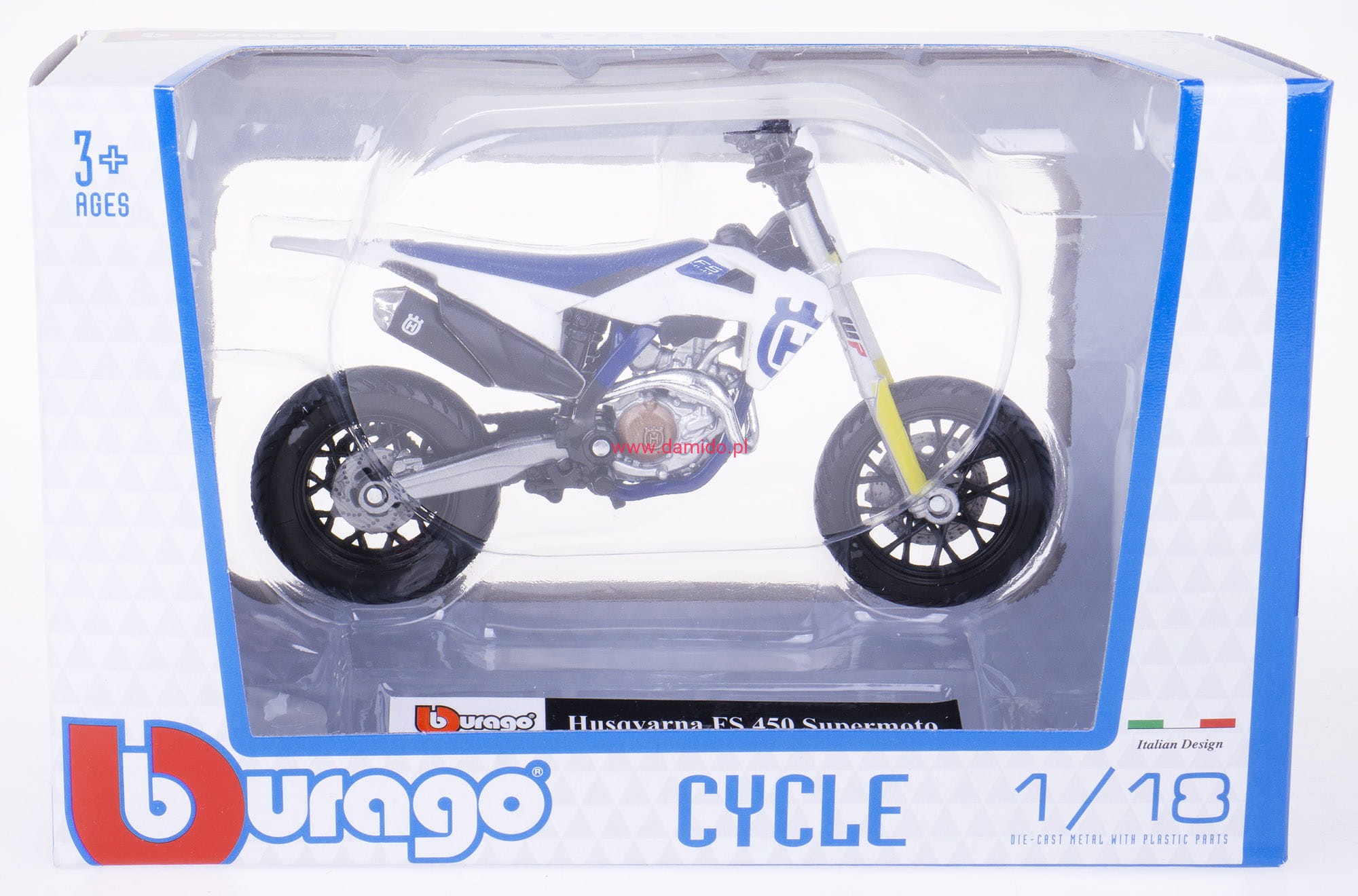 HUSQVARNA FS 450 SUPERMOTO METALOWY MODEL BBURAGO 1:18 MOTOCYKL 51030