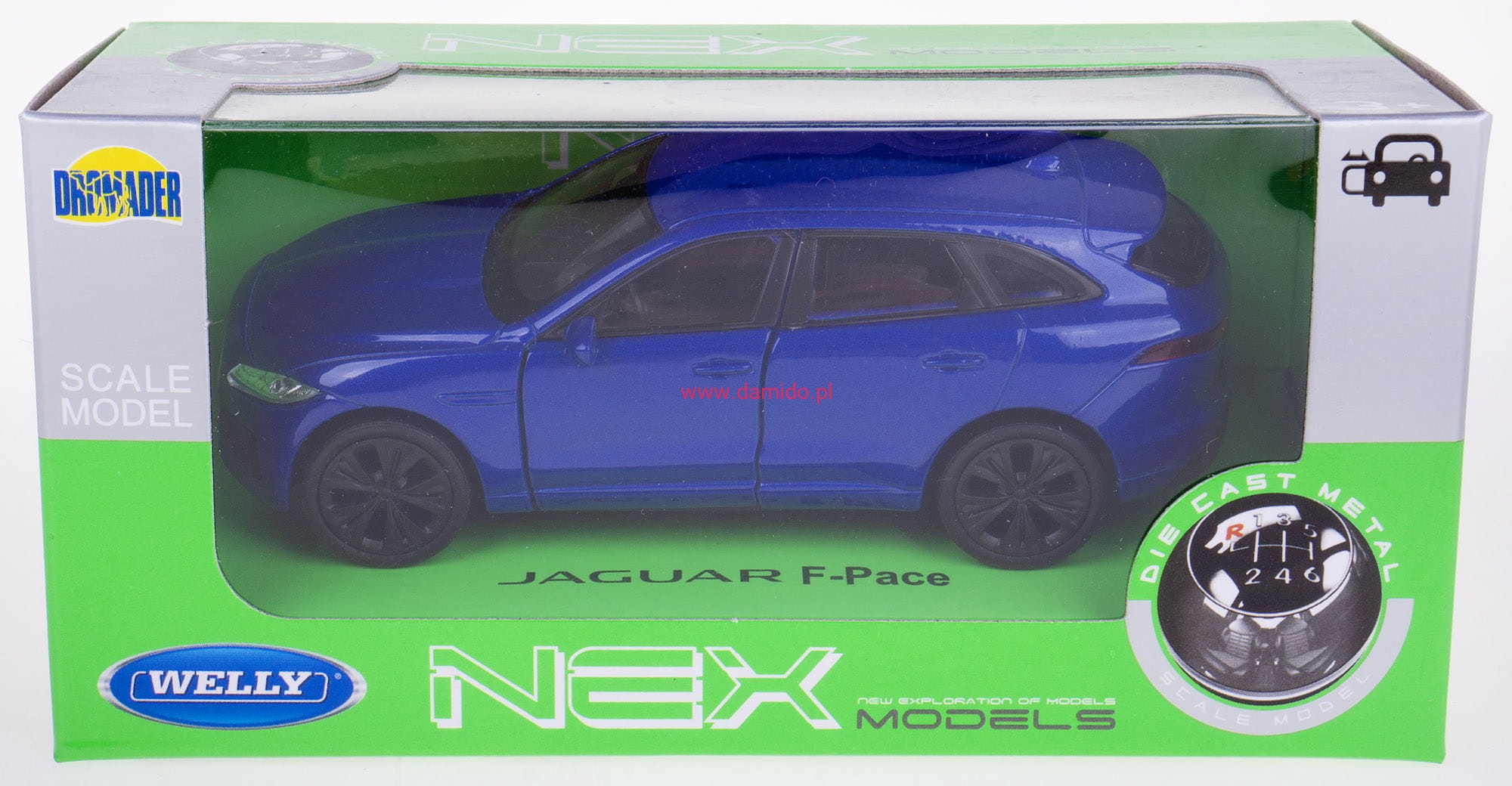 Model JAGUAR F-PACE wykonany jest w skali 1:34\39 firmy WELLY.