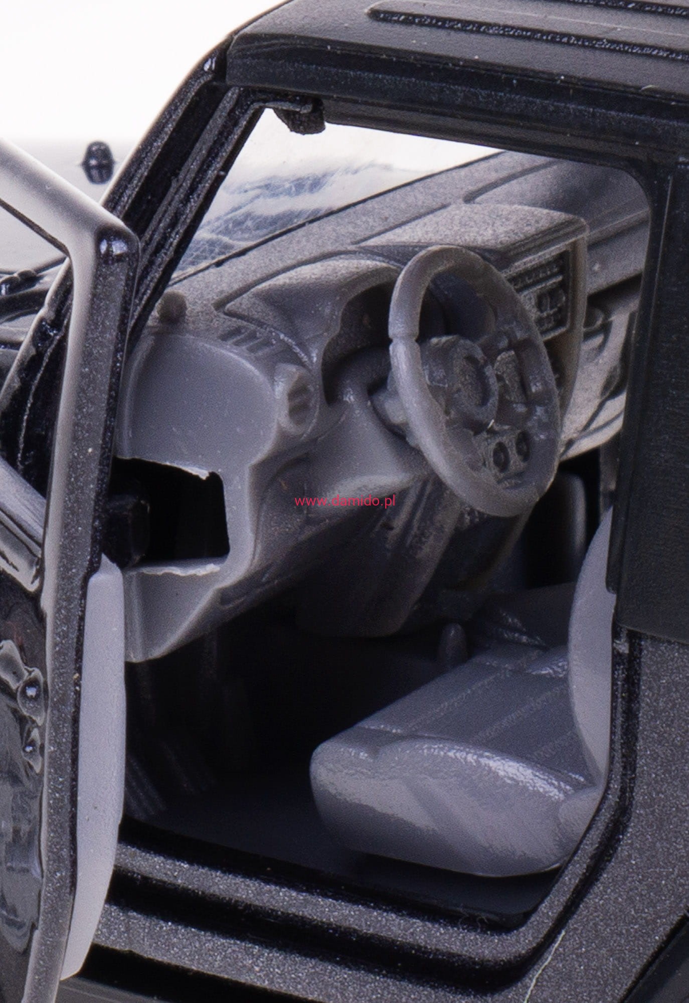 Model wykonany jest z metalu z dodatkiem plastiku. Posiada otwierane drzwi oraz gumowe opony.
