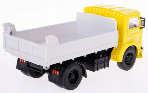 Pojazd wywrotki posiada podnoszoną pakę do góry co sprawi dodatkową atrakcję podczas fascynujących zabaw małym fanom czterech kółek.
