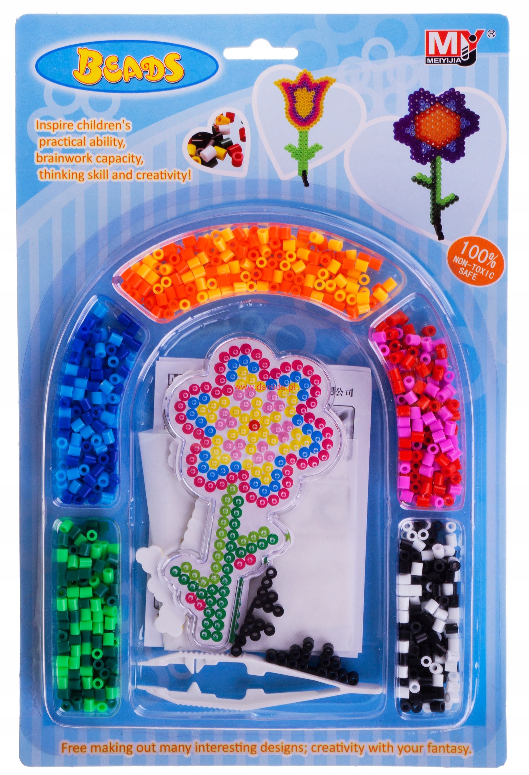 Koraliki wykonane z tworzywa sztucznego (polietylen). Dziecko ćwiczy precyzję, doskonali wyobraźnię, zdolności manualne małych rączek przy wymyślaniu kolejnych wzorów nowej biżuterii. To doskonała forma zabawy pobudzająca zainteresowania Twojego dziecka.