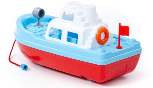 Łódź posiada kółeczka i linę, która pozwala również na zabawę nie tylko we wodzie.