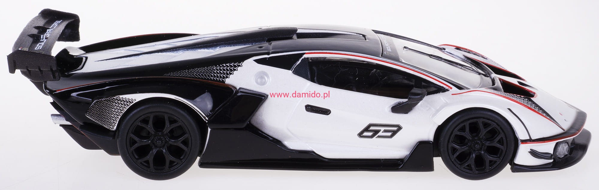LAMBORGHINI ESSENZA SCV12 METALOWY MODEL FIRMY BBURAGO W SKALI 1:32 BIAŁO-CZARNY 41167