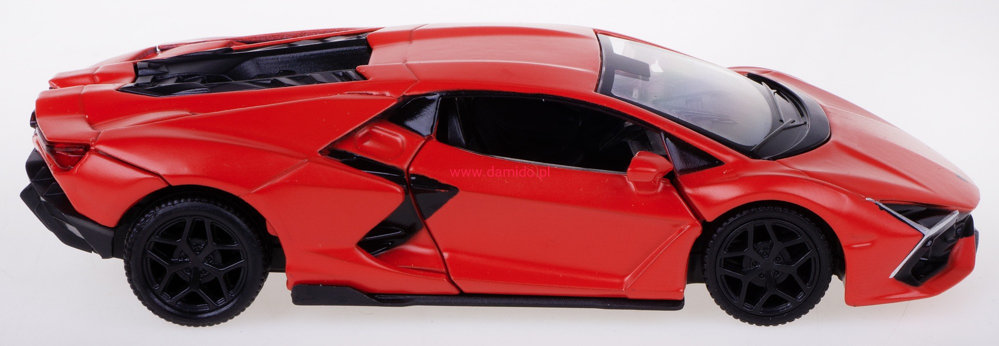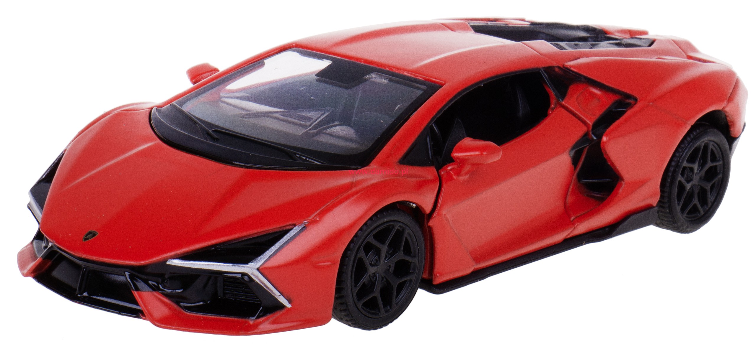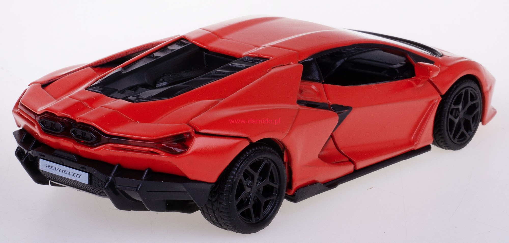 Model LAMBORGHINI REVUELTO 2024 w skali 1:32/39 z napędem pull-back - wykonany został z metalu i plastiku na gumowych oponach.
