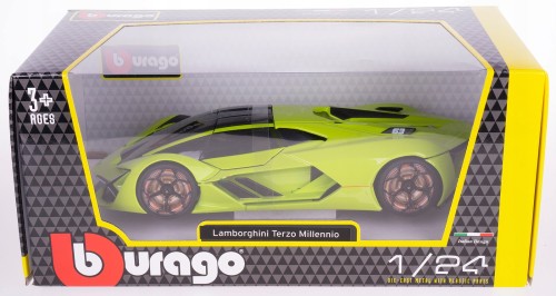 Model LAMBORGHINI TERZO MILLENNIO wykonany został z metalu i plastiku na gumowych oponach w skali 1:24 firmy BBURAGO.